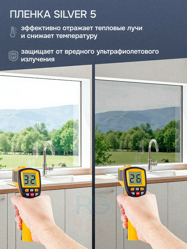 Пленка для окон солнцезащитная Silver 35 Reton Group. Пленка самоклеющаяся на окна (серебристая) - 100х250 см