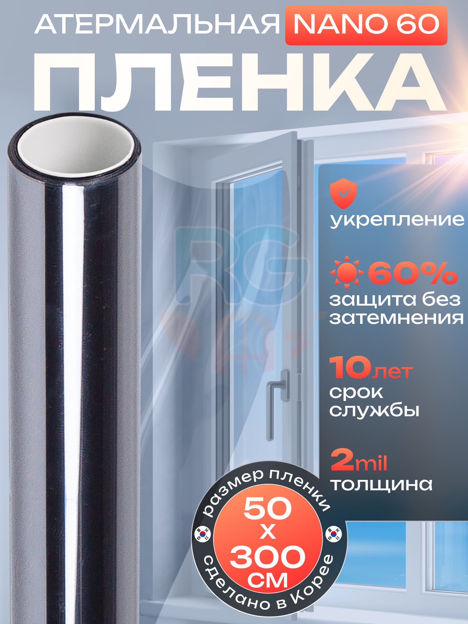 Пленка атермальная для окон NANO 60. Пленка солнцезащитная на окно размер 100х300 см