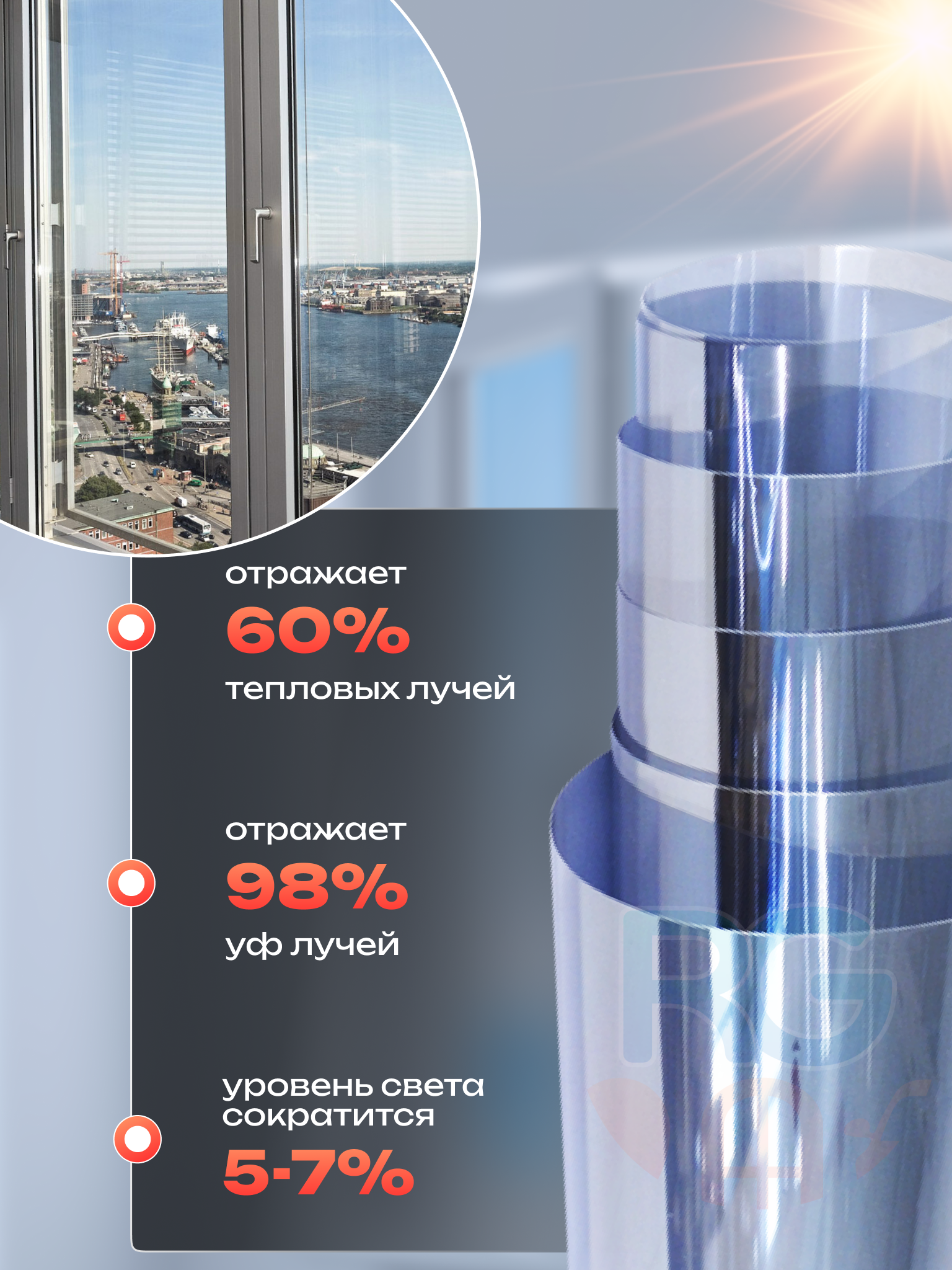 Энергосберегающая пленка для окон Nano 60 Reton Group. Светоотражающая пленка прозрачная. Атермальная тонировка: 80х152 см.