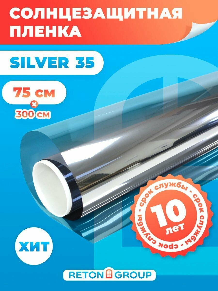 Купить Пленка на окна солнцезащитная Silver 35 Reton Group. Светоотражающая пленка на окна. Полотно 75х300 см. Цвет серебристый.