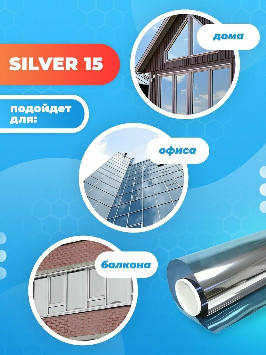 Солнцезащитная пленка для окон Silver 15 Reton Group. Отражающая пленка на окно 90х152 см