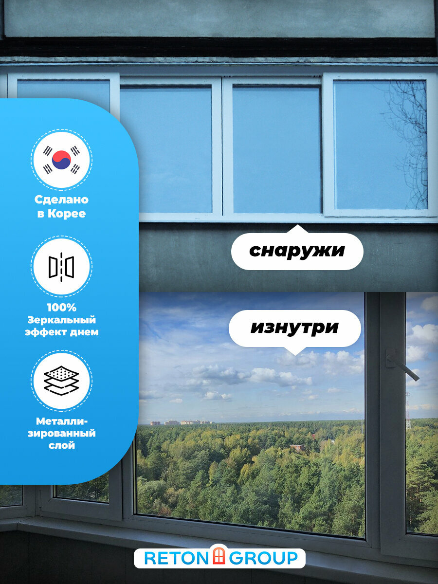 Солнцезащитная пленка для окон Silver 15 Reton Group. Отражающая пленка на окно 90х152 см