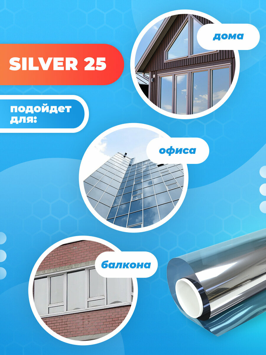 Пленка на окна солнцезащитная Silver 25 Reton Group. Пленка на стекло окна -100х250 см