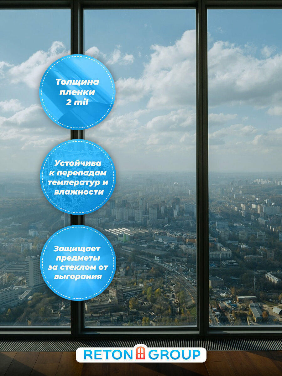 Атермальная пленка для окон Nano 95 Reton Group. Отражающая пленка на окно (прозрачная) 152х75 см х 6 шт.