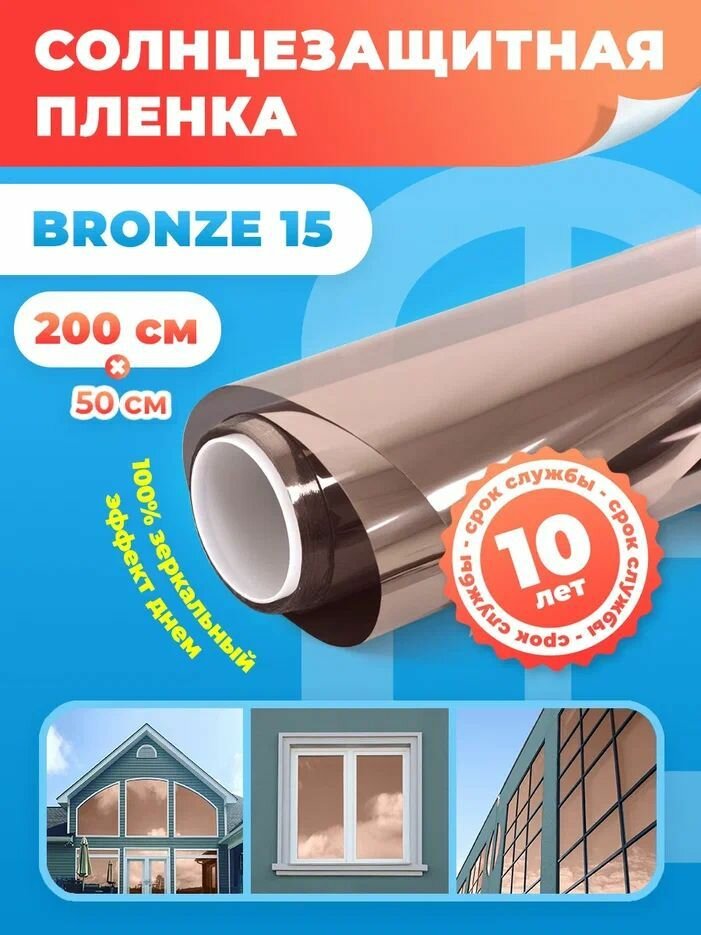 Зеркальная пленка на окна Bronze 15 Reton Group. Отражающая пленка на окно - 100х100 см. Цвет: бронза