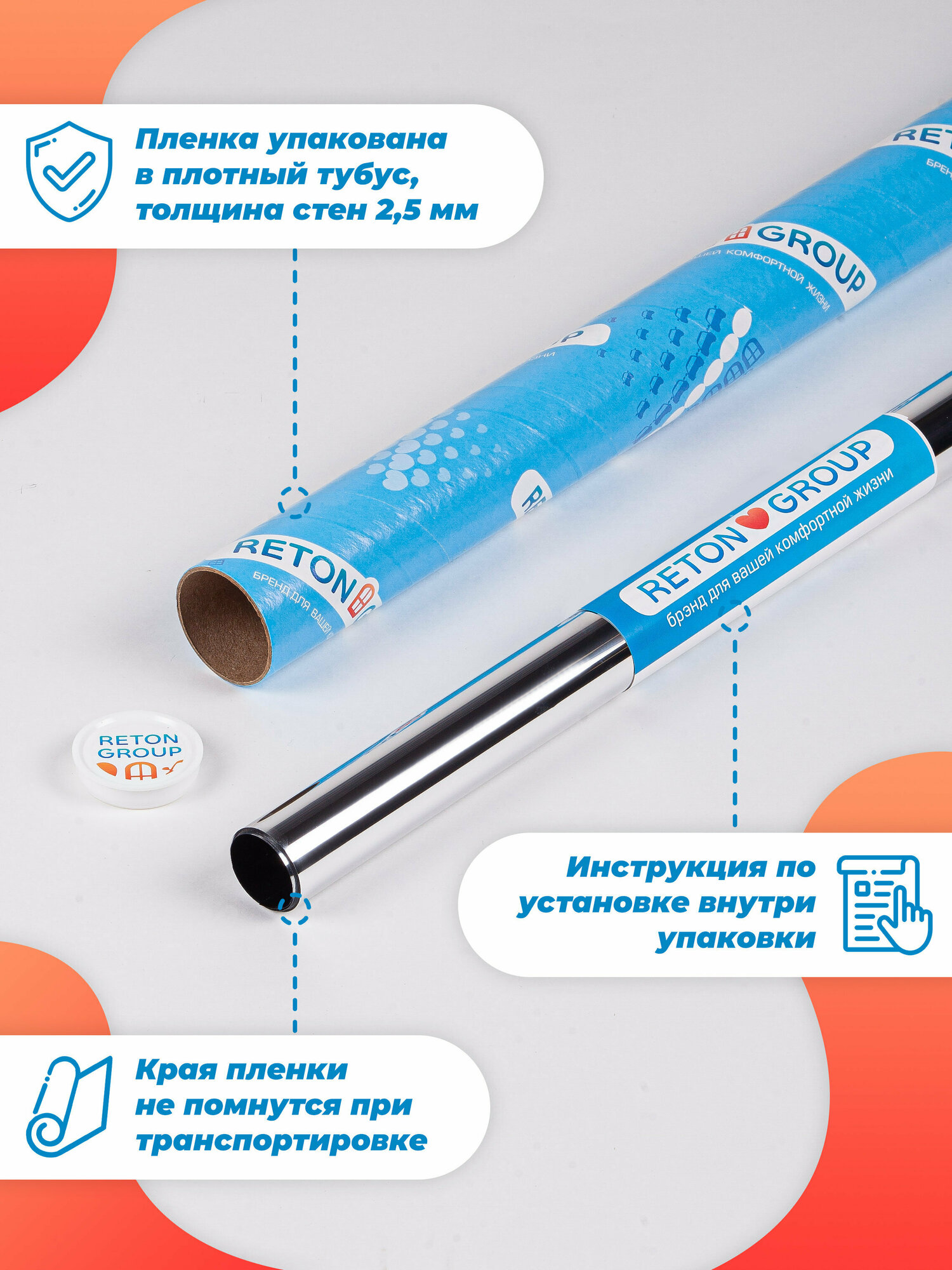 Пленка от солнца на окна Silver 35 Reton Group. Светоотражающая пленка на окна, серебристая - размер 152х50 см.