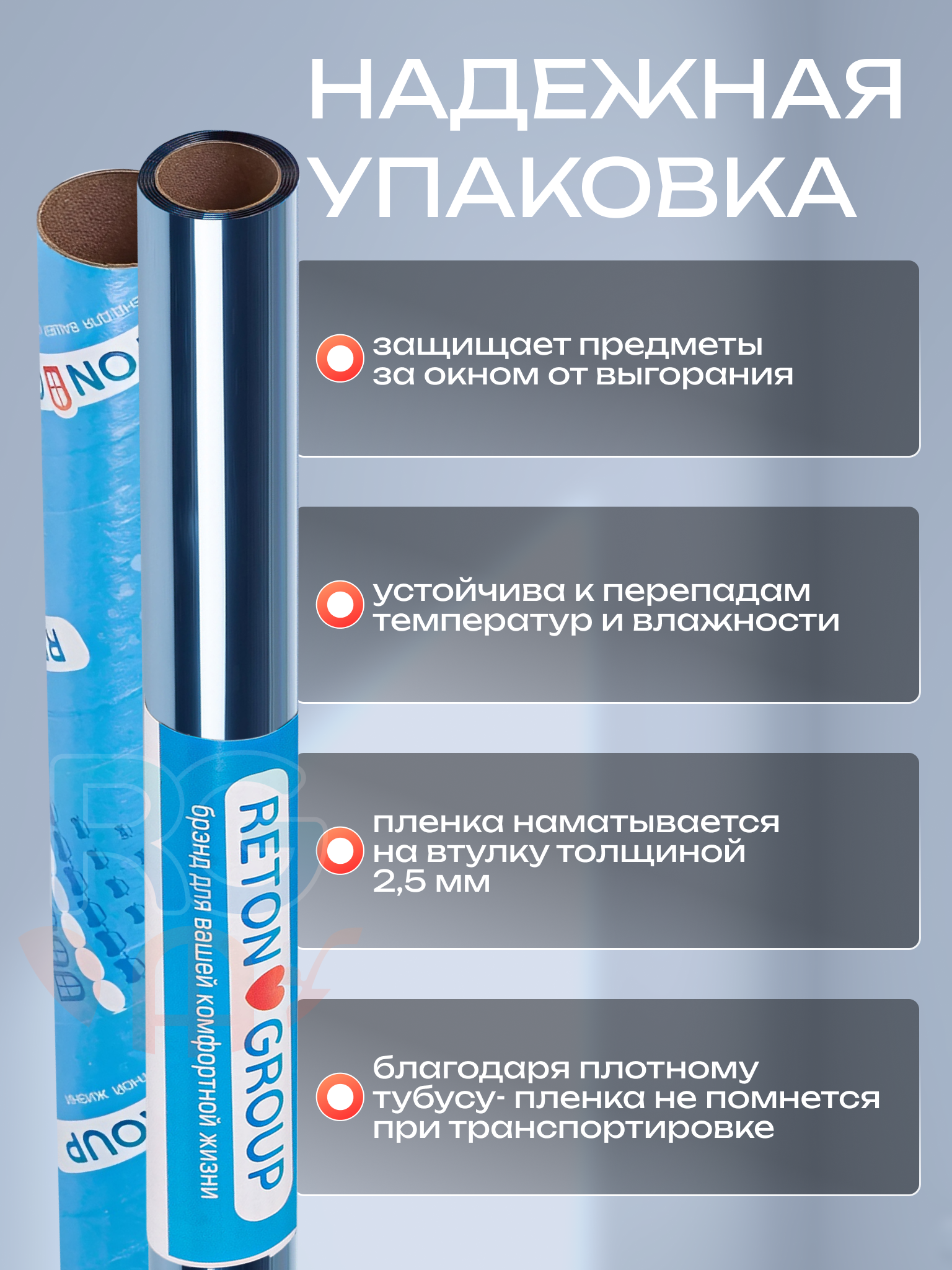Пленка от солнца на окна Silver 35 Reton Group. Светоотражающая пленка на окна, серебристая - размер 152х50 см.
