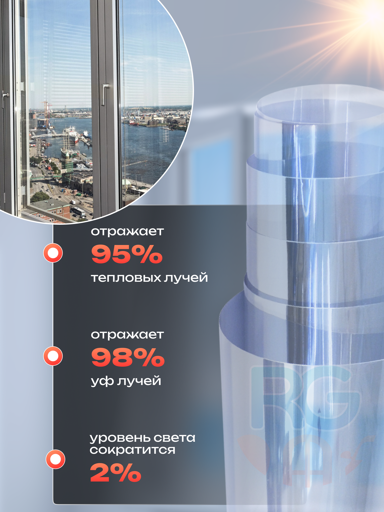 Атермальная пленка для окон Nano 95 Reton Group. Пленка на окно солнцезащитная (прозрачная) 60х152 см