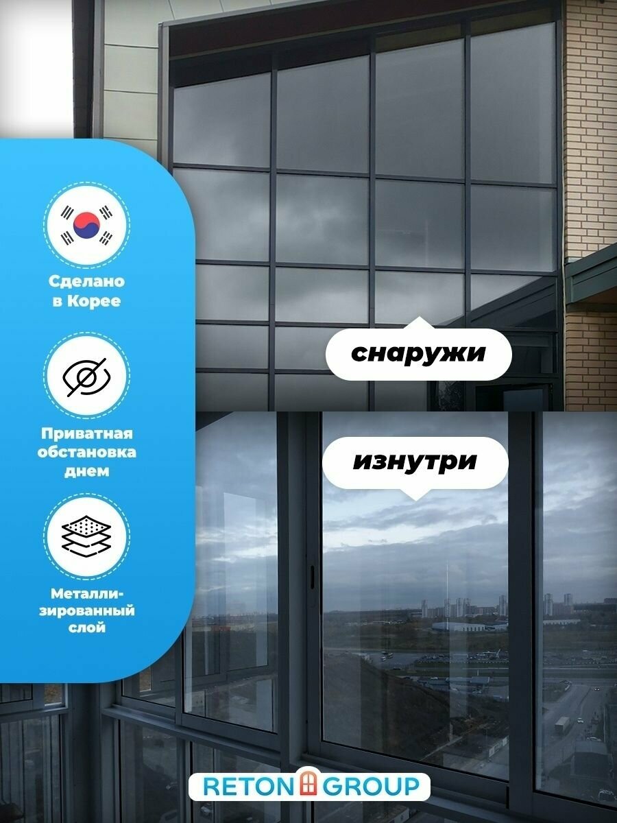 Солнцезащитная пленка для окон Silver 15 Reton Group. Отражающая пленка на окно 90х152 см