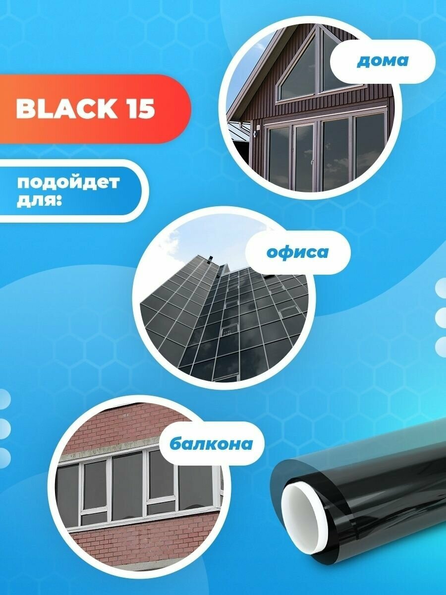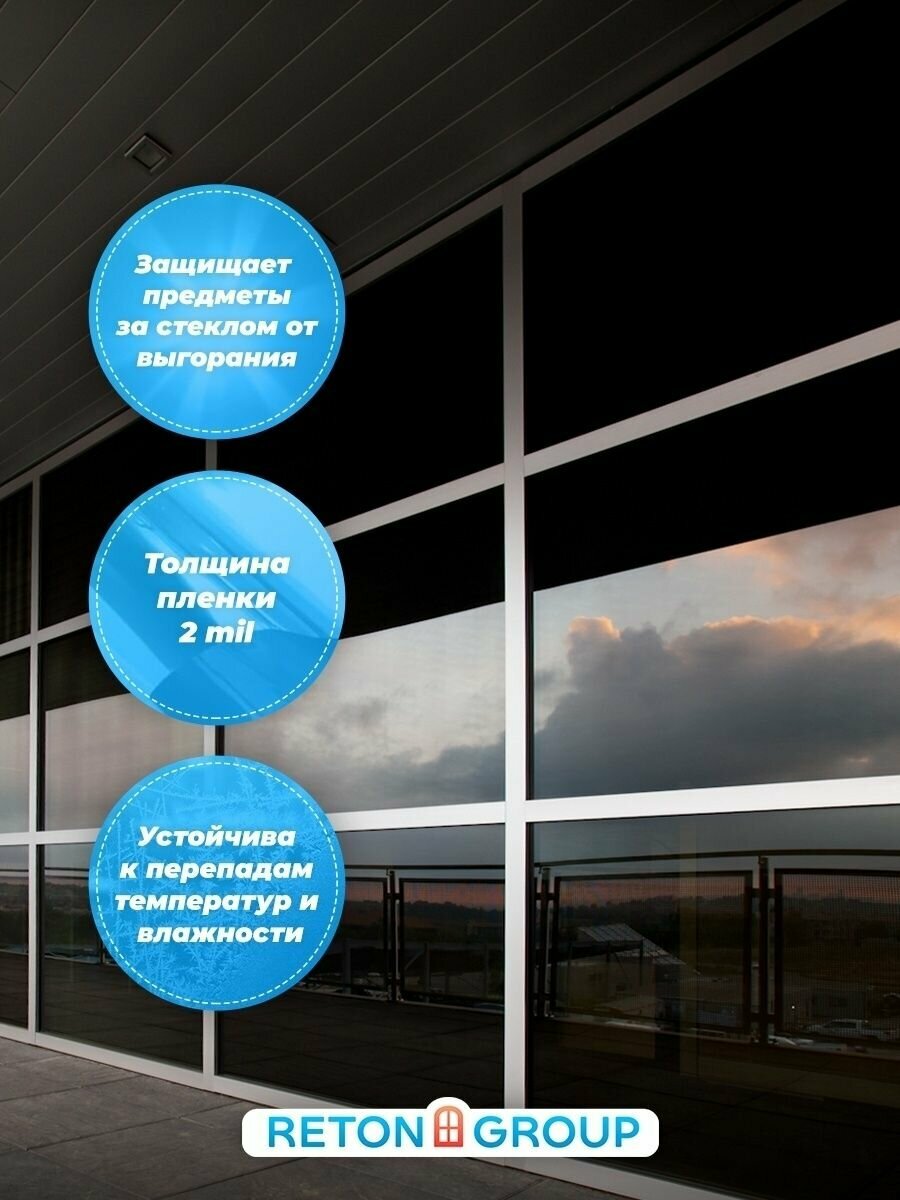 Пленка на окна солнцезащитная. Пленка от солнца Black 15 Reton Group. Тонировка для окон дома. Размер: 152х100 см