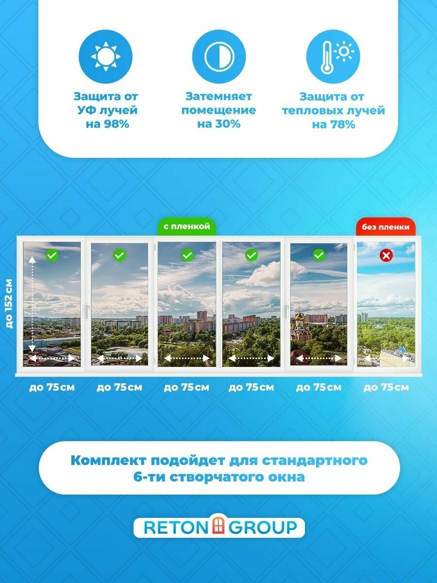 Атермальная пленка Nano 90 Reton Group. Самоклеющаяся пленка для окон 152х75 см х 3 шт. (комплект на 3 створки)
