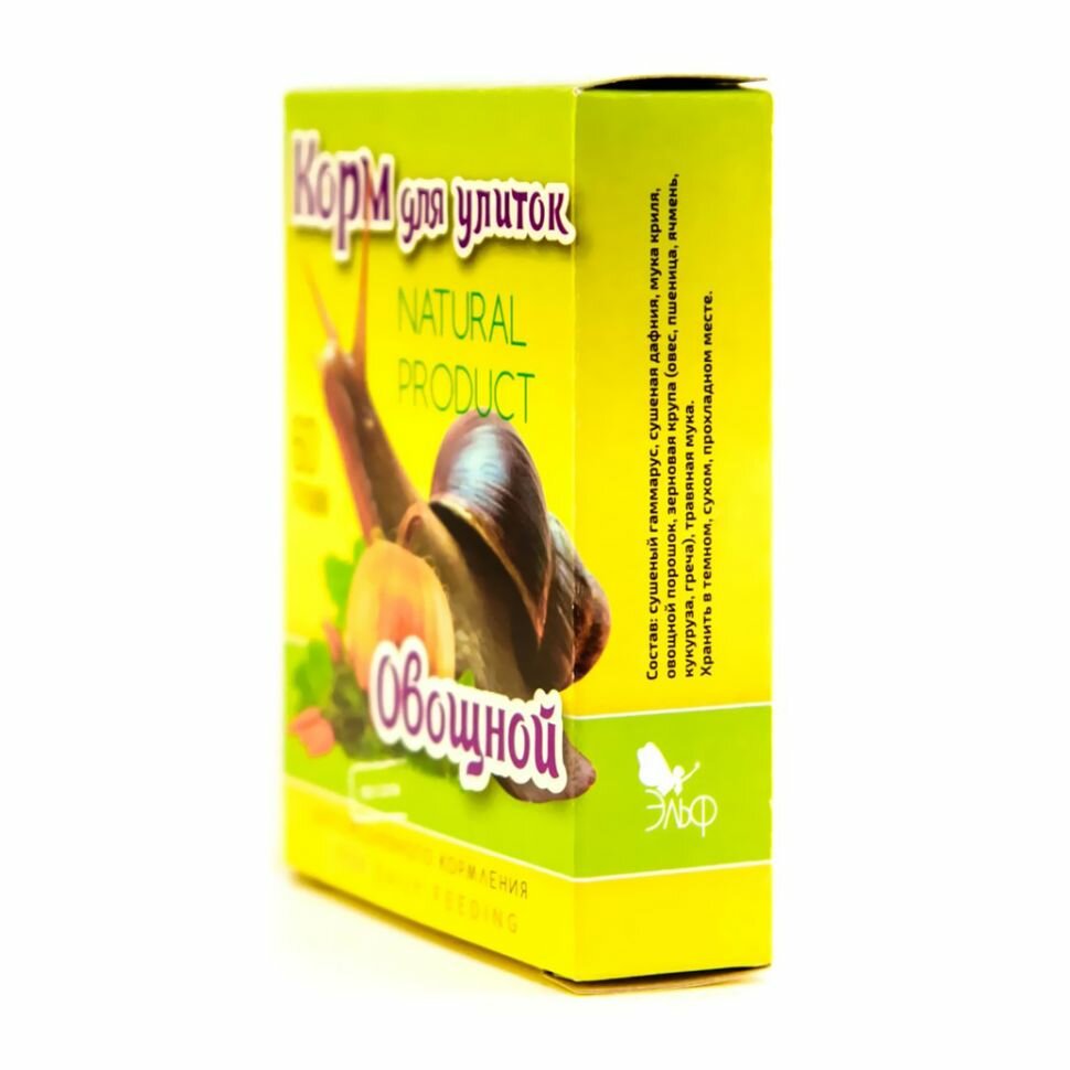Корм для улиток Эльф "Овощной", повседневный, коробка 60 г интересное: