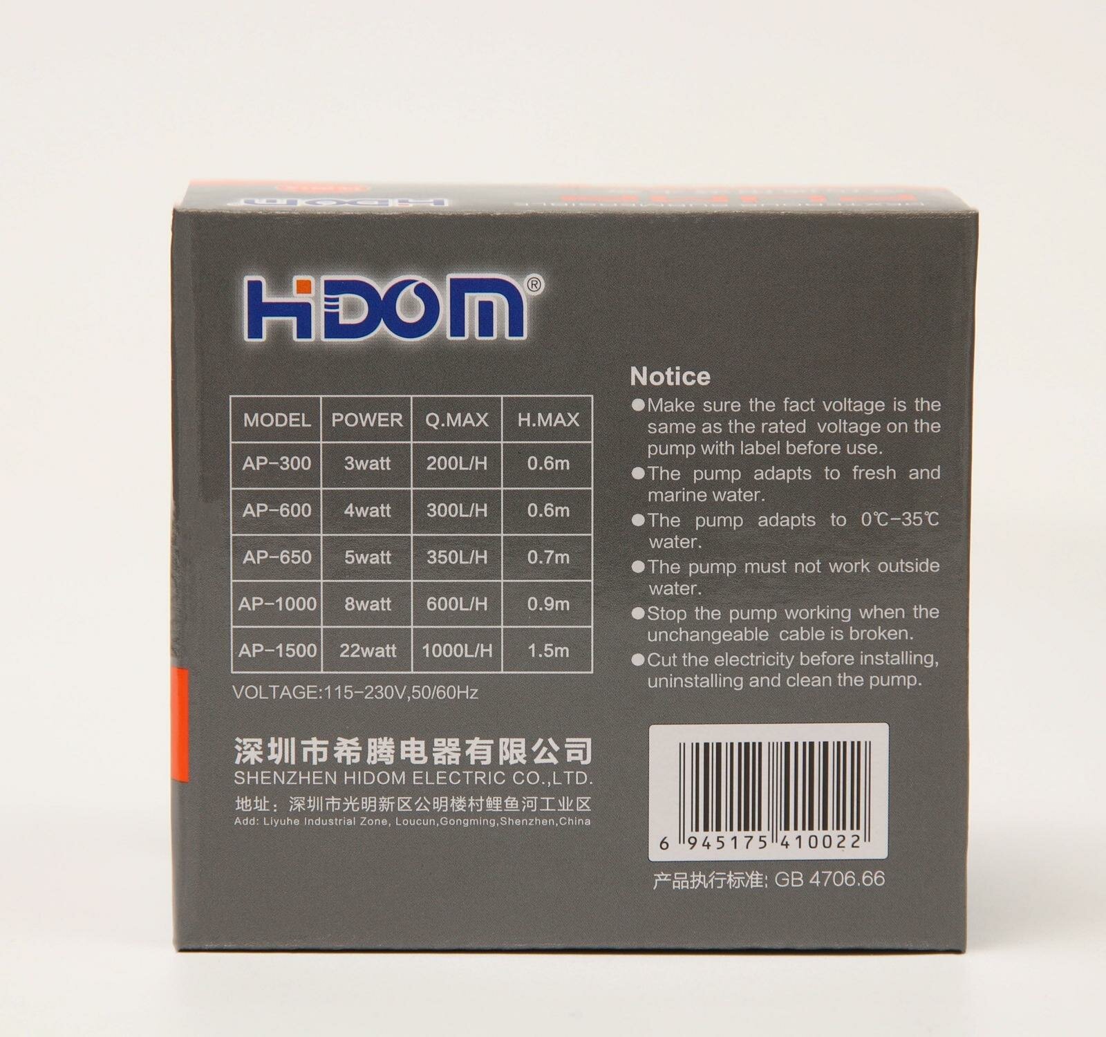 Помпа фонтанная Hidom AP-600, 300 л/ч, 4 Вт