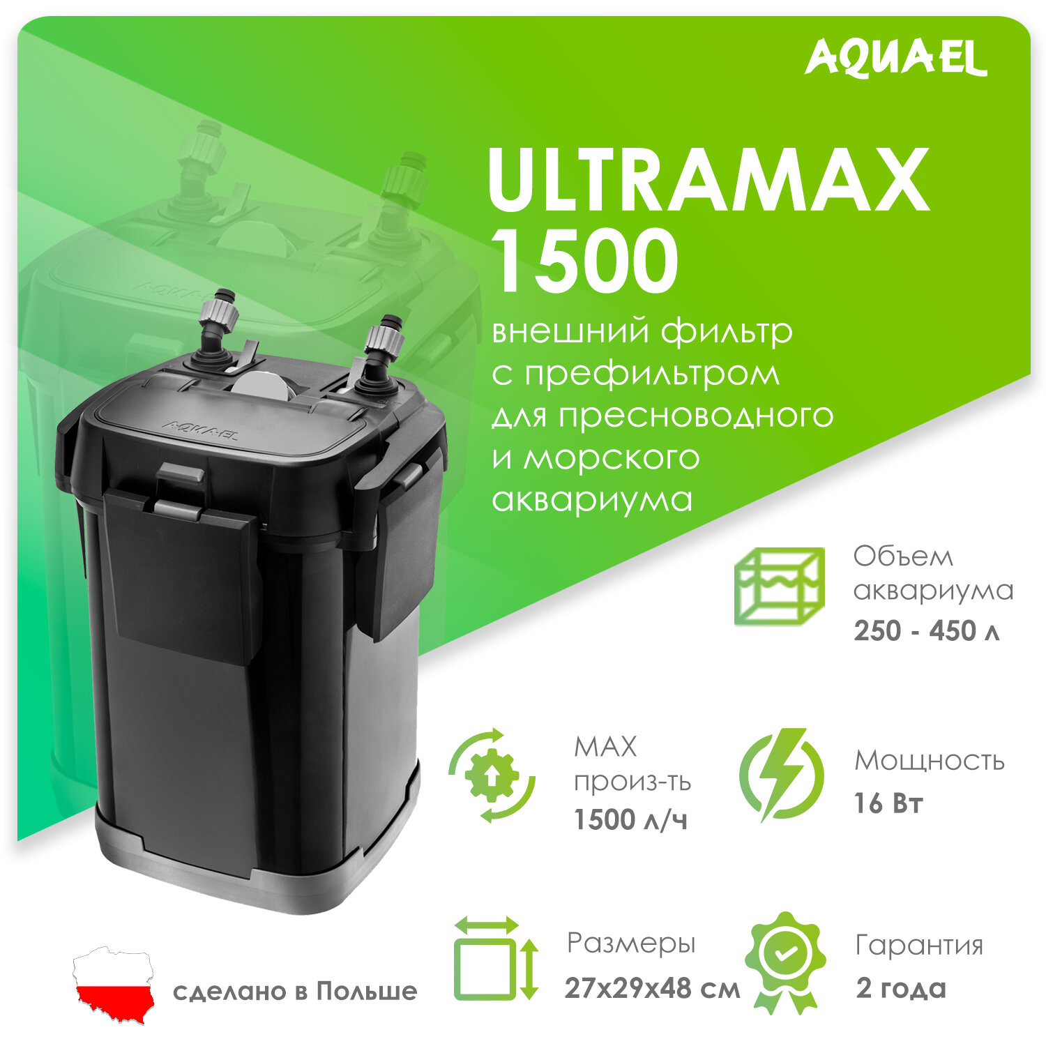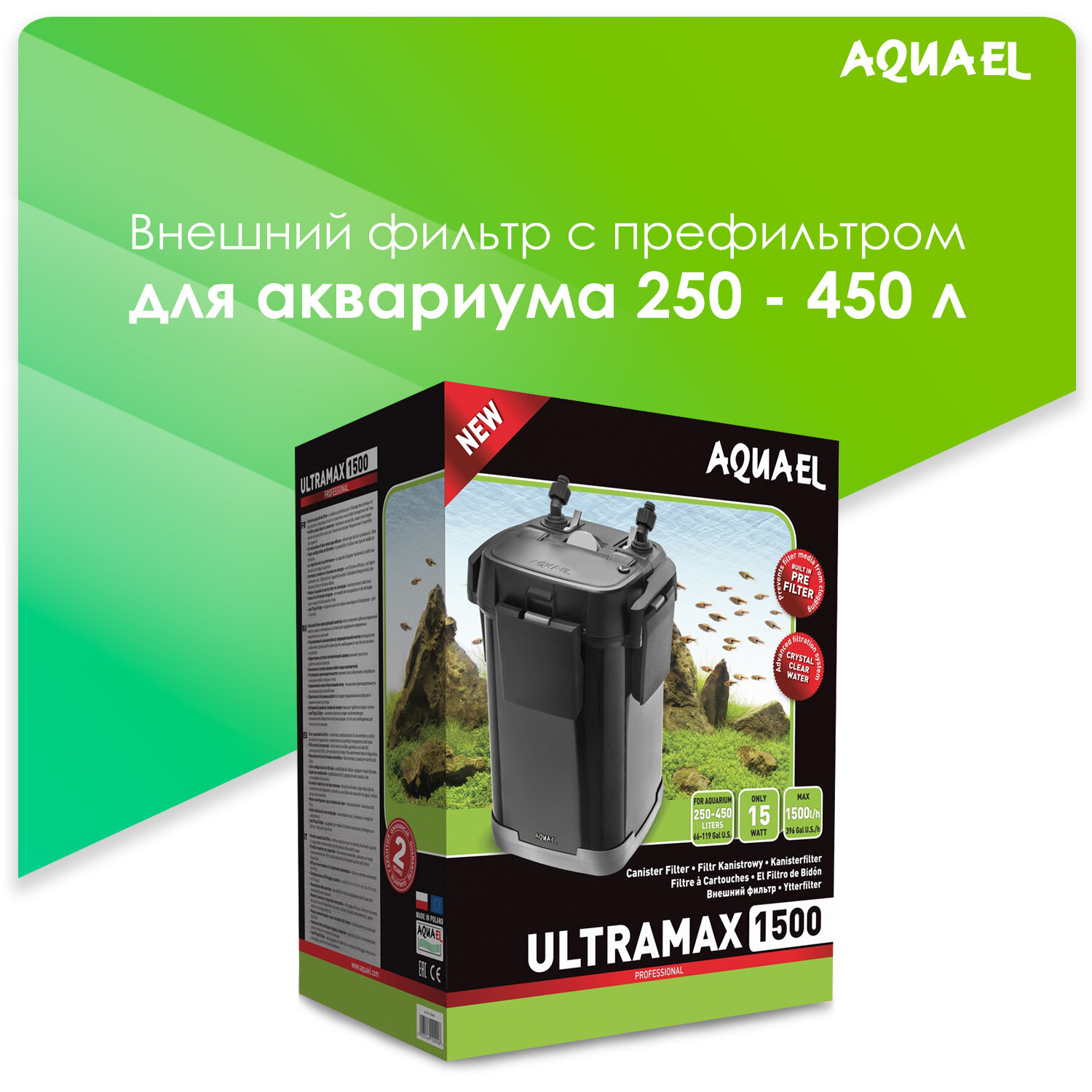 Внешний фильтр AQUAEL ULTRAMAX 1500 для аквариума 250 - 450 л (1500 л/ч, 16 Вт) интересное: