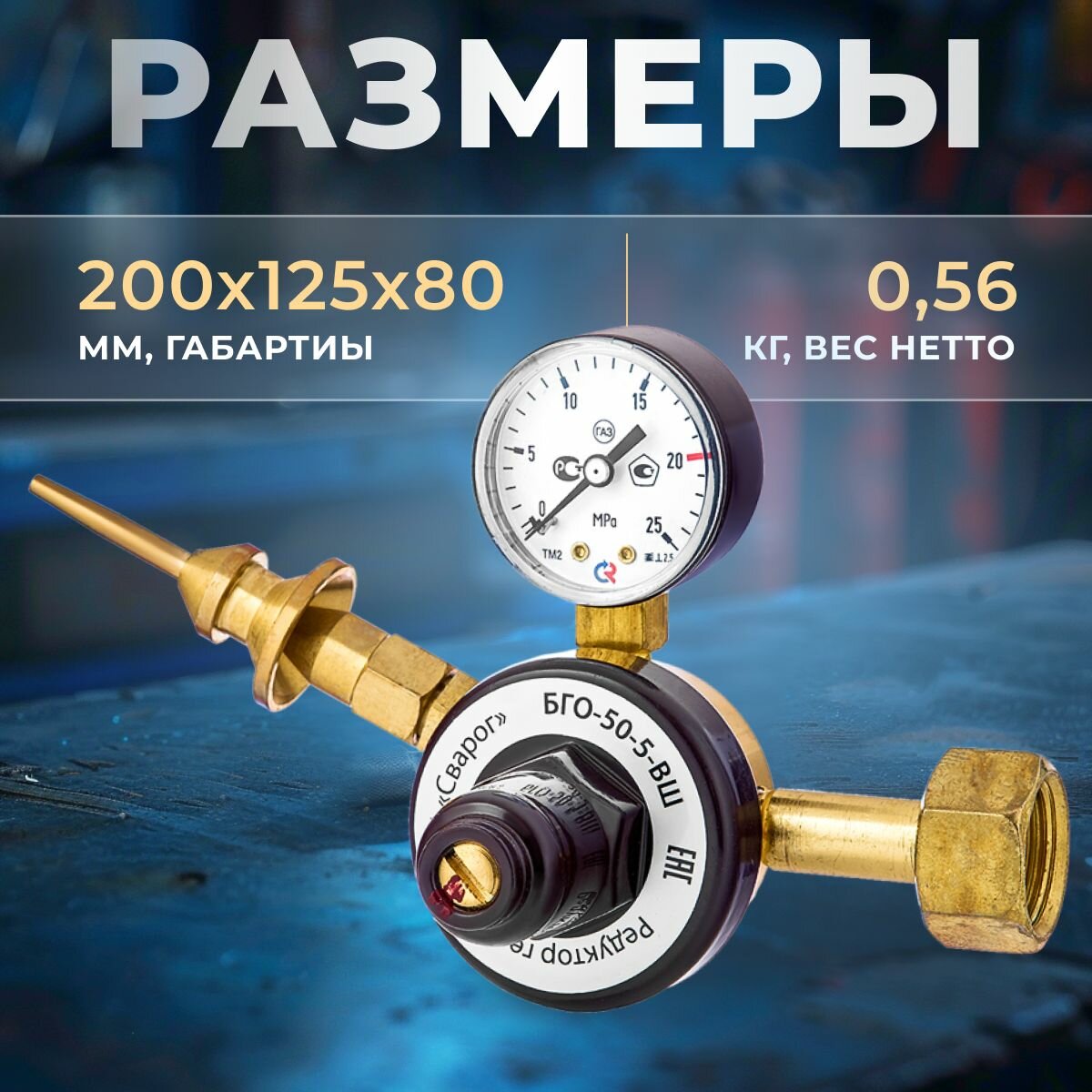 Редуктор гелиевый Сварог БГО-50-5-ВШ (7870305000), манометр с поверкой