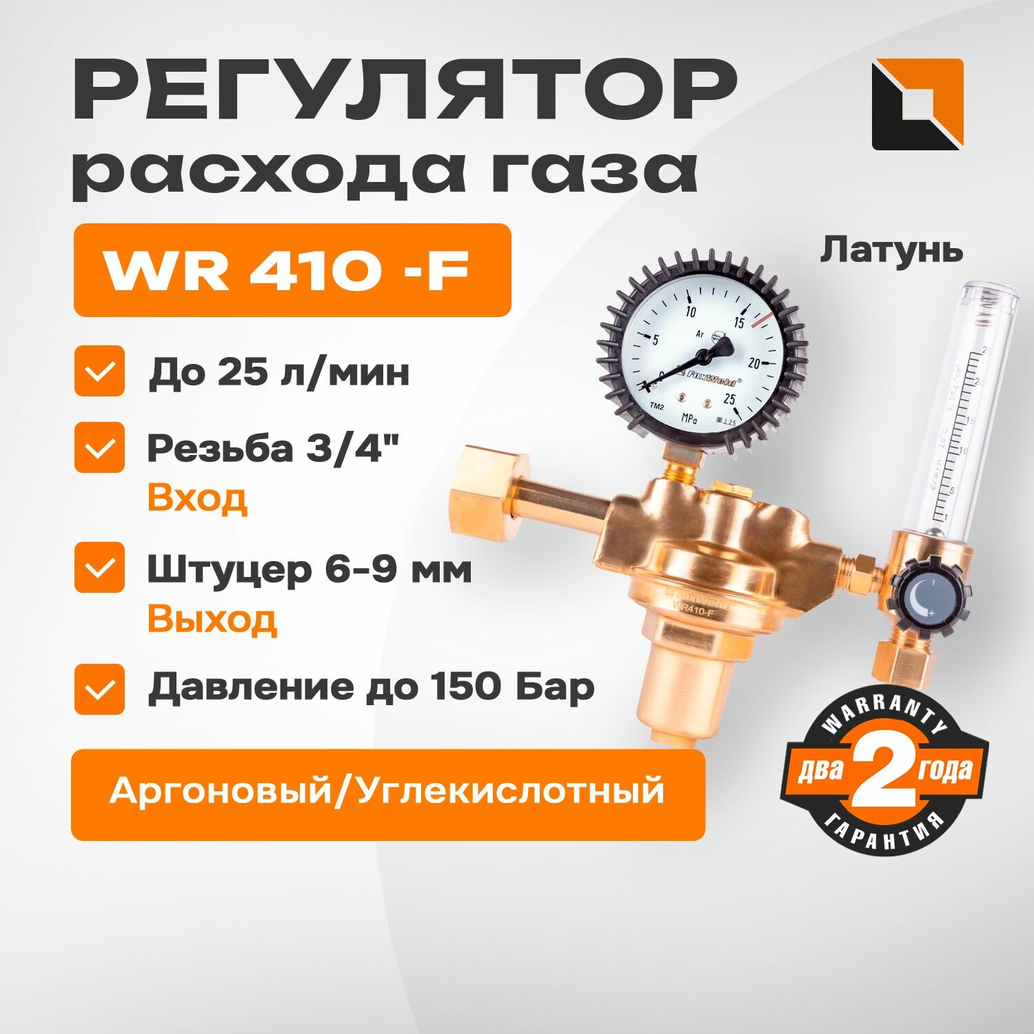 Foxweld Регулятор WR410-F аргоновый/углекислотный , 1 манометр, 1 расходомер, вентиль, пр-во FoxWeld 4412