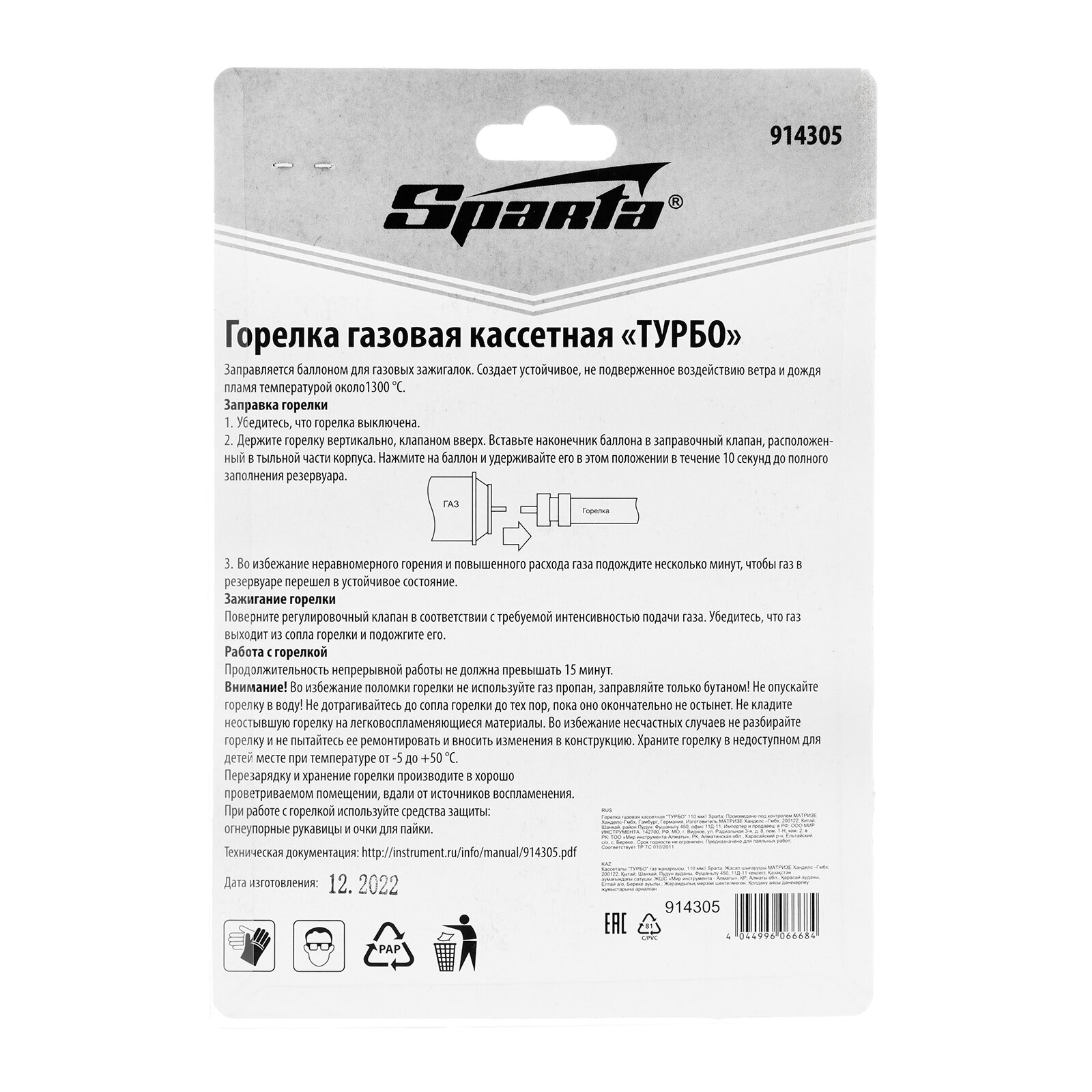 Горелка газовая кассетная турбо 110 мм Sparta интересное: