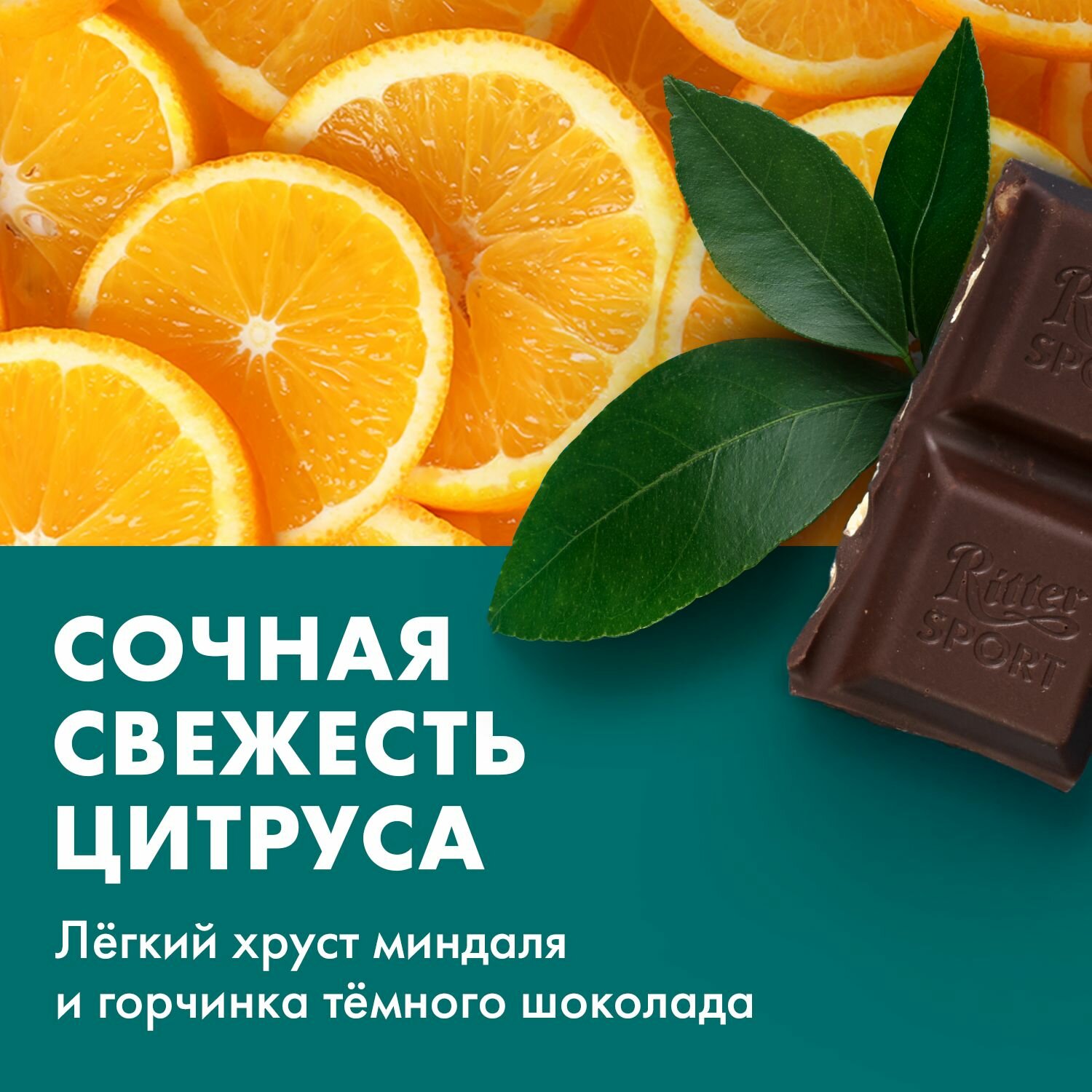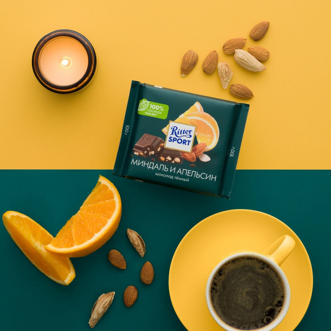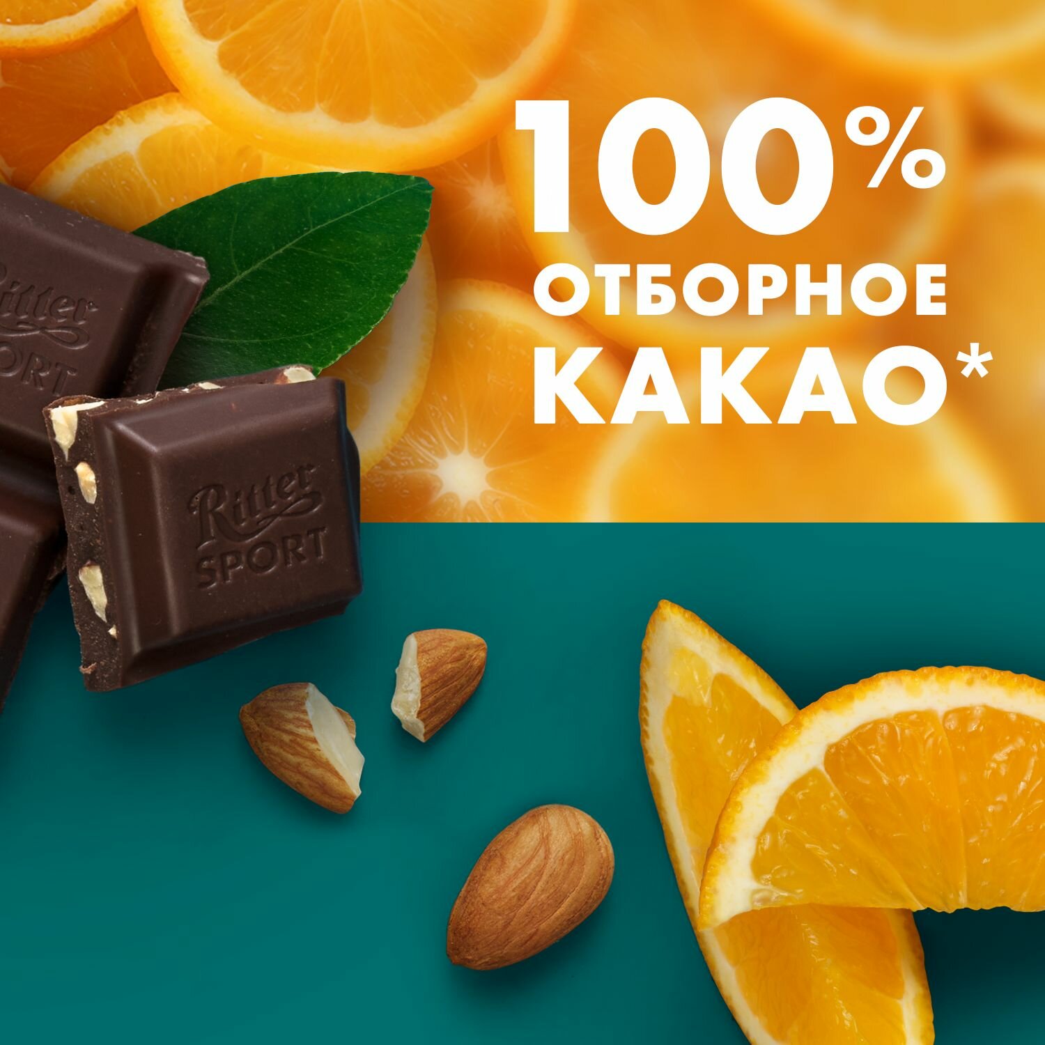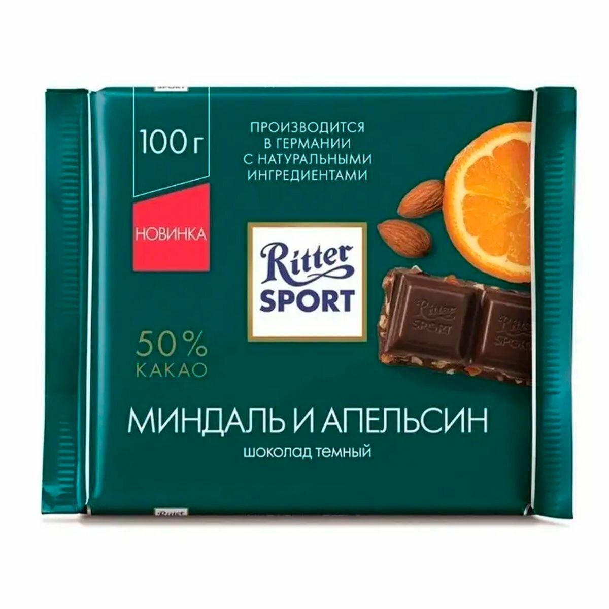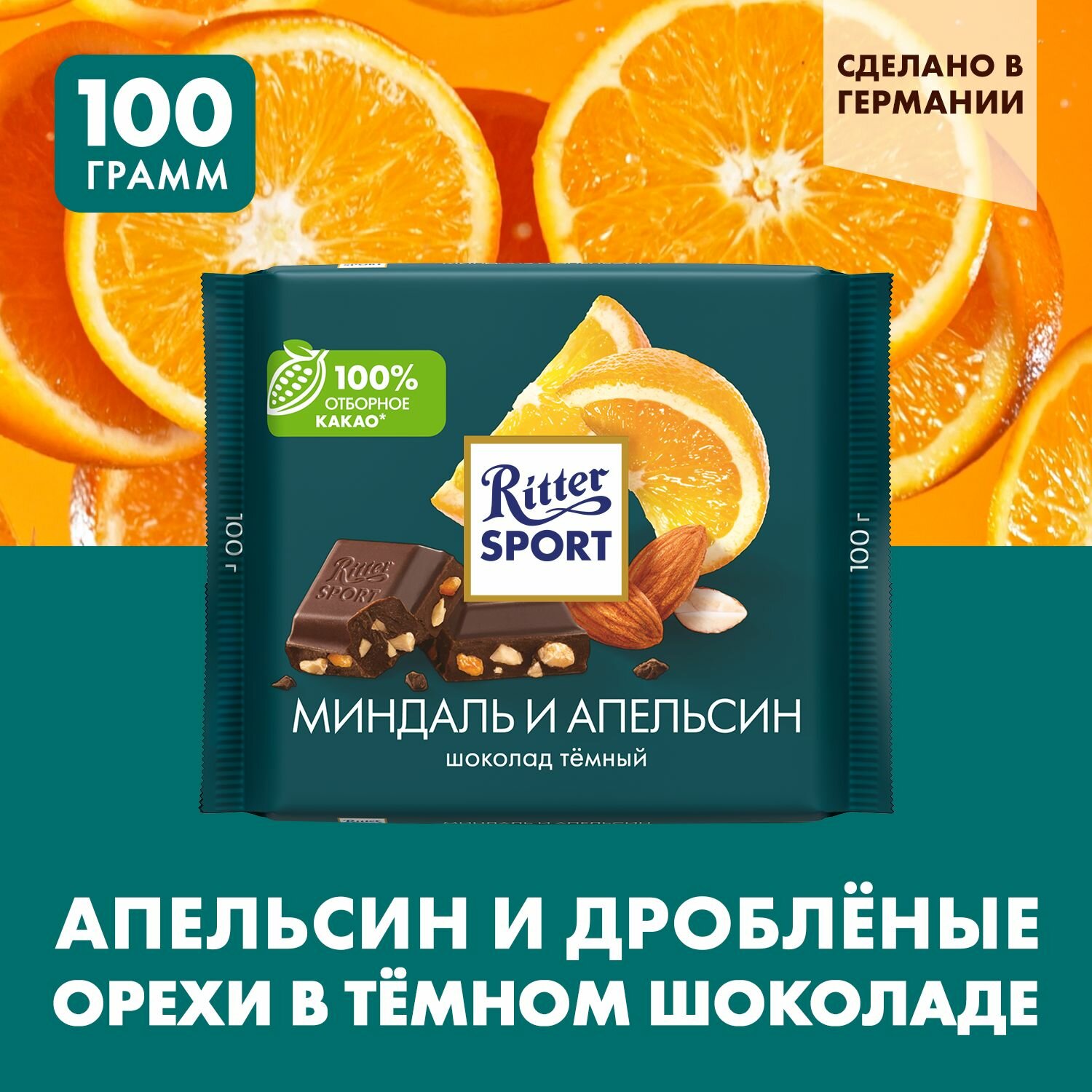 Шоколад темный RITTER SPORT Миндаль и апельсин, 100г
