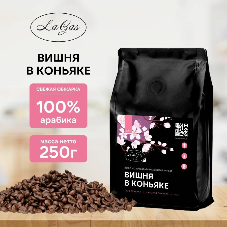Купить Кофе молотый Вишня в коньяке 100% арабика, 250 гр