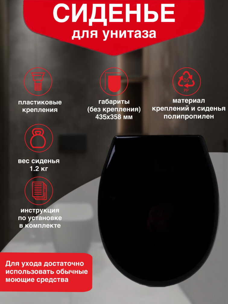 Сиденье для унитаза Стандарт пластиковое с креплениями цвет черный