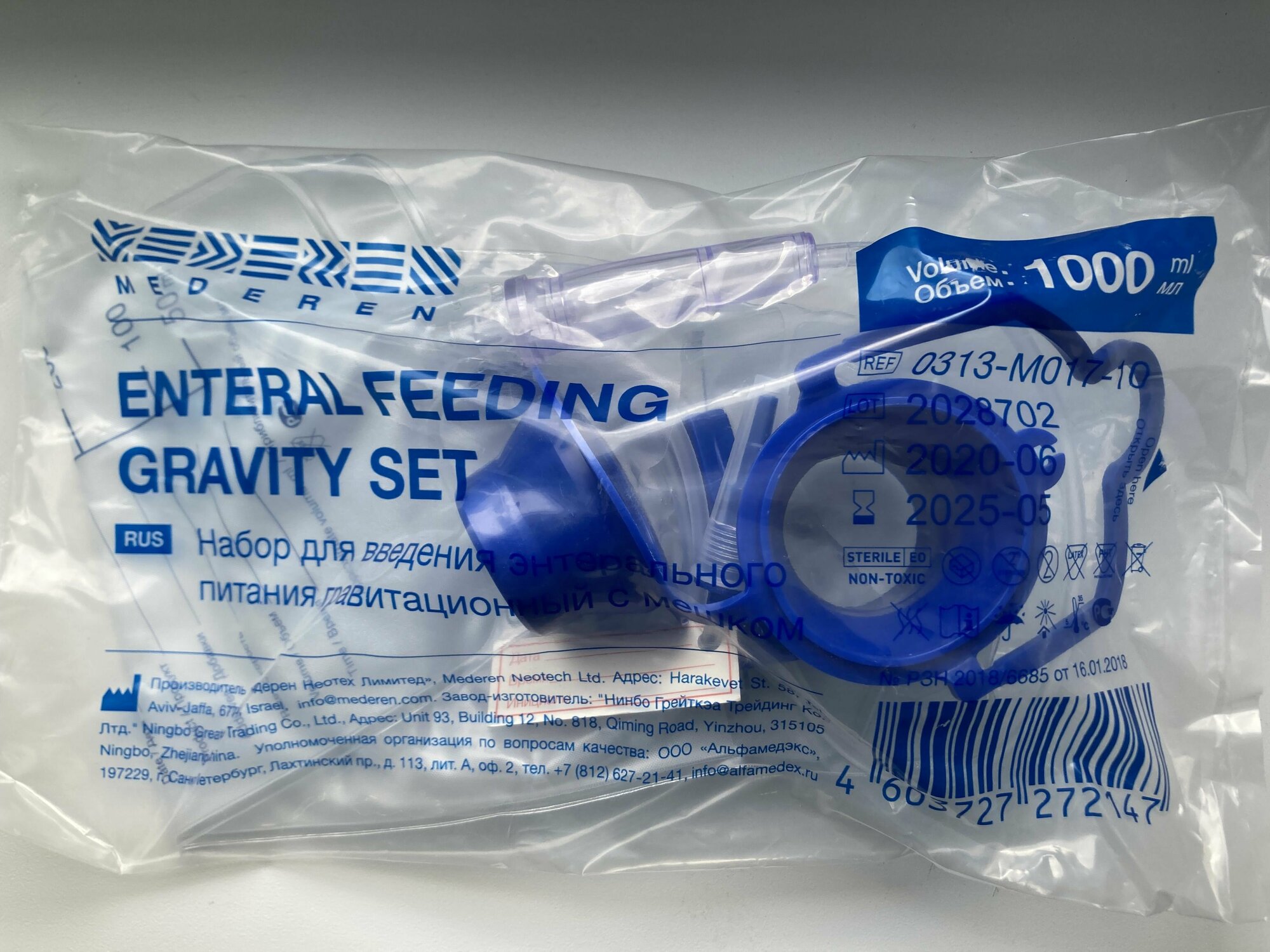 Набор Mederen для введения энтерального питания гравитационный с мешком, объем 1000мл 0313-M017-10 интересное: