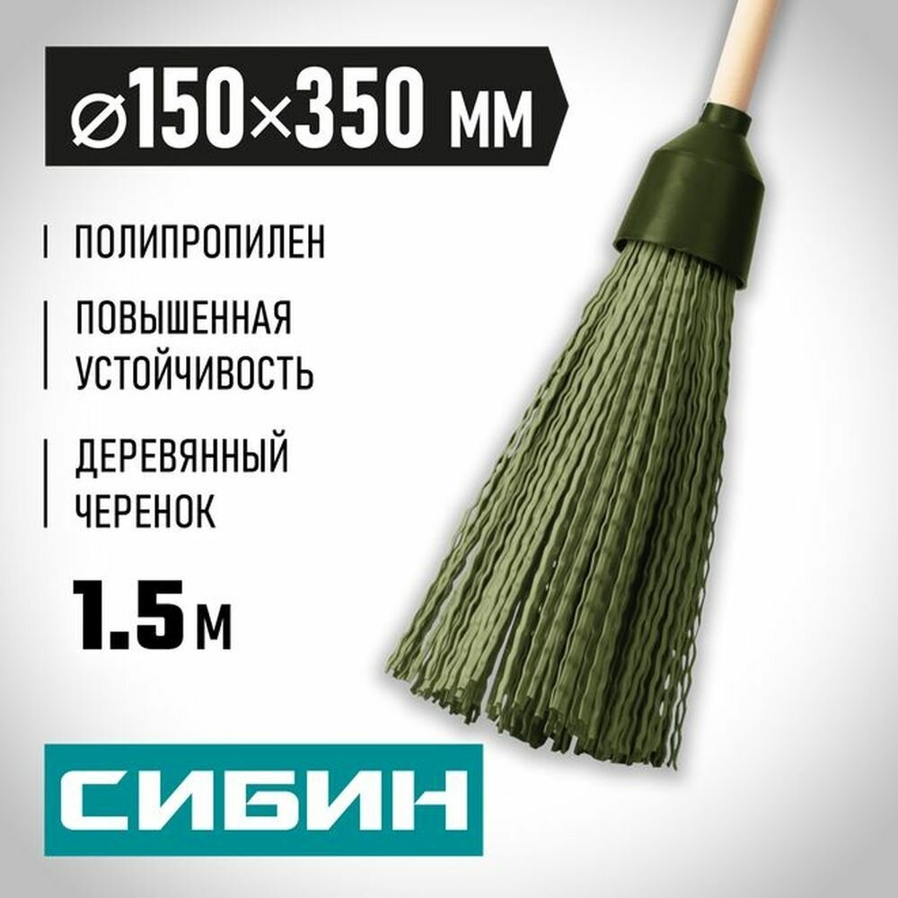 Круглая пластиковая метла на деревянном черенке СИБИН, 350х150мм, полипропилен, коническое резьбовое соединение (39225-1) интересное: