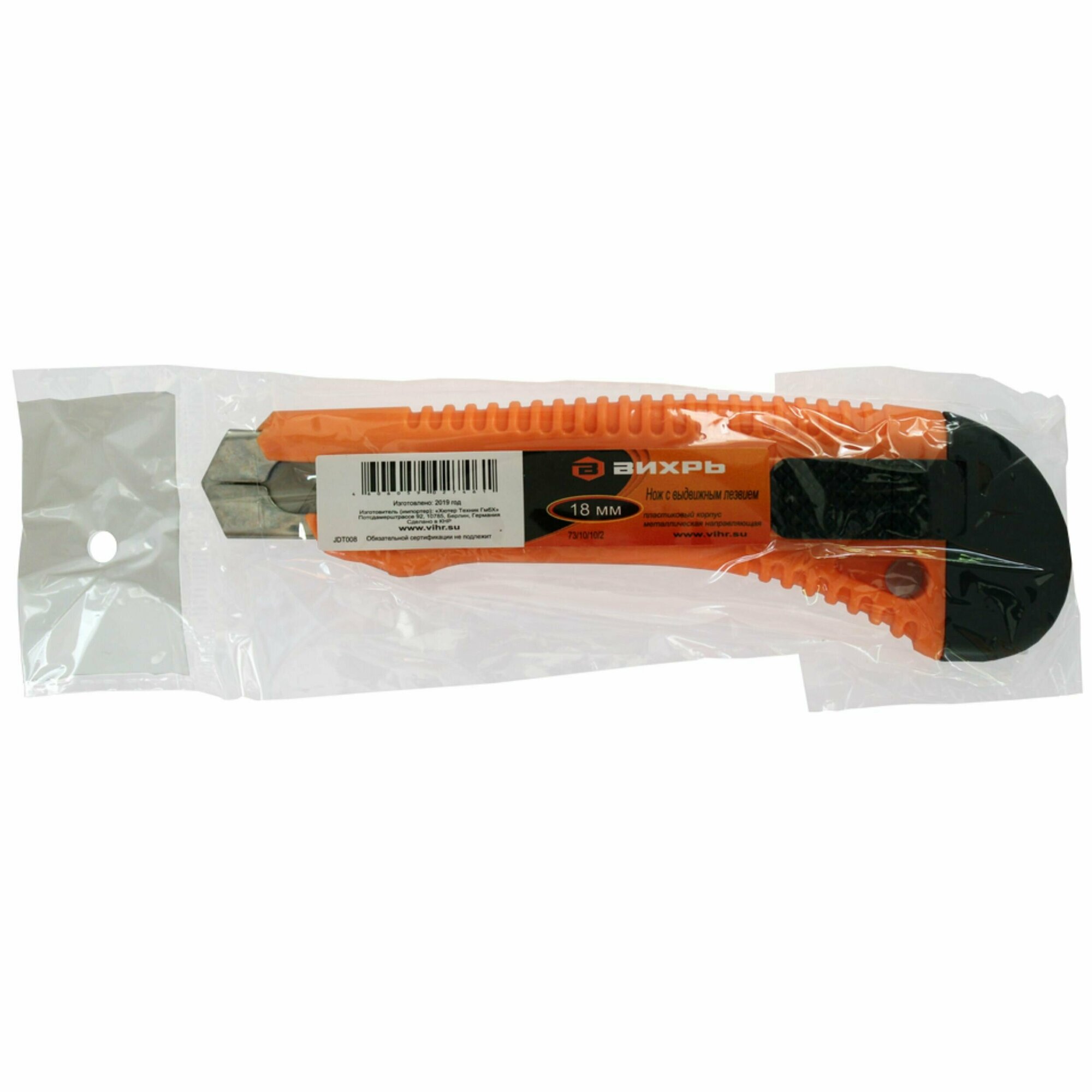 Нож с выдвижным лезвием 18 ммпластиковый корпусметаллическая направляющаяВихрь