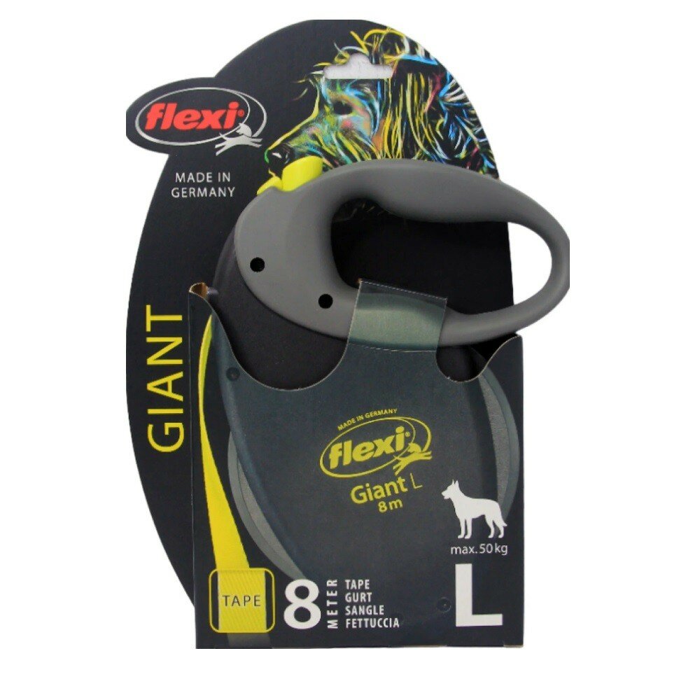 Поводок-рулетка Flexi Giant Neon Professional, 10 м, 50 кг, светоотражающий