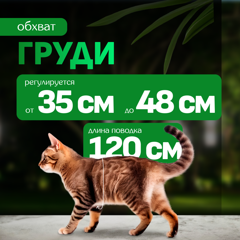 Светоотражающая шлейка с поводком ZooWell для кошек универсальная, шлейка для кошек