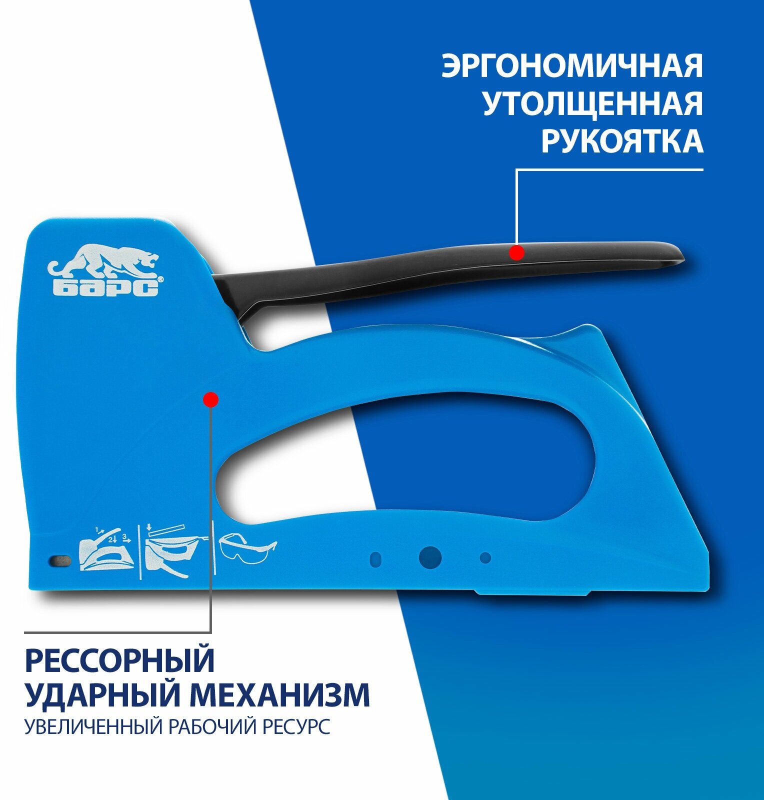 Степлер пластиковый, тип скобы 53,6-10 мм // БАРС Недостатки: Нет |