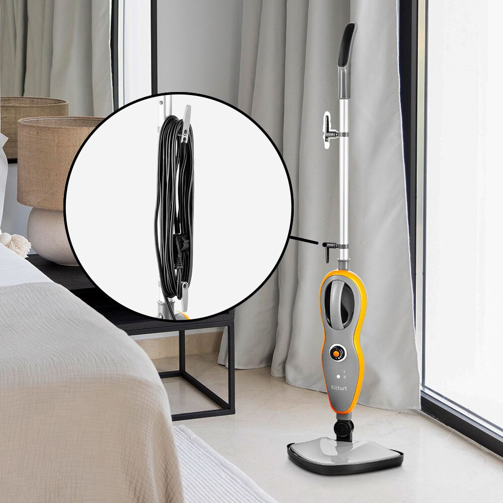 Паровая швабра Kitfort КТ-1047, 1500 Вт, 370 мл, шнур 8 м, серо-оранжевая