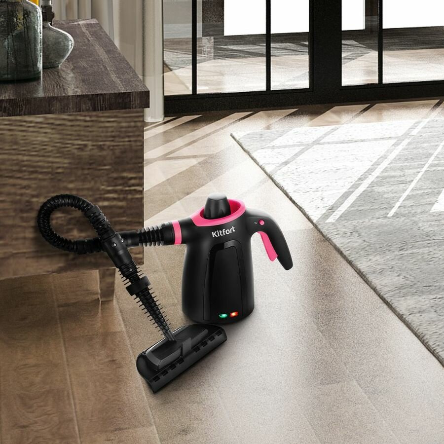Пароочиститель ручной KitFort КТ-9170-1, черный/малиновый интересное:
