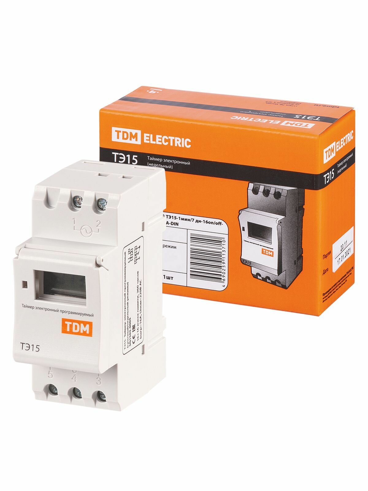 Таймер электронный TDM Electric ТЭ15-1мин/7дн-16on/off-16А-DIN