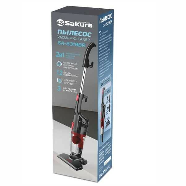 Пылесос вертикальный, Sakura, SA-8318BR, 800 Вт, с контейнером, 1.2 л, сухой, черно-красный