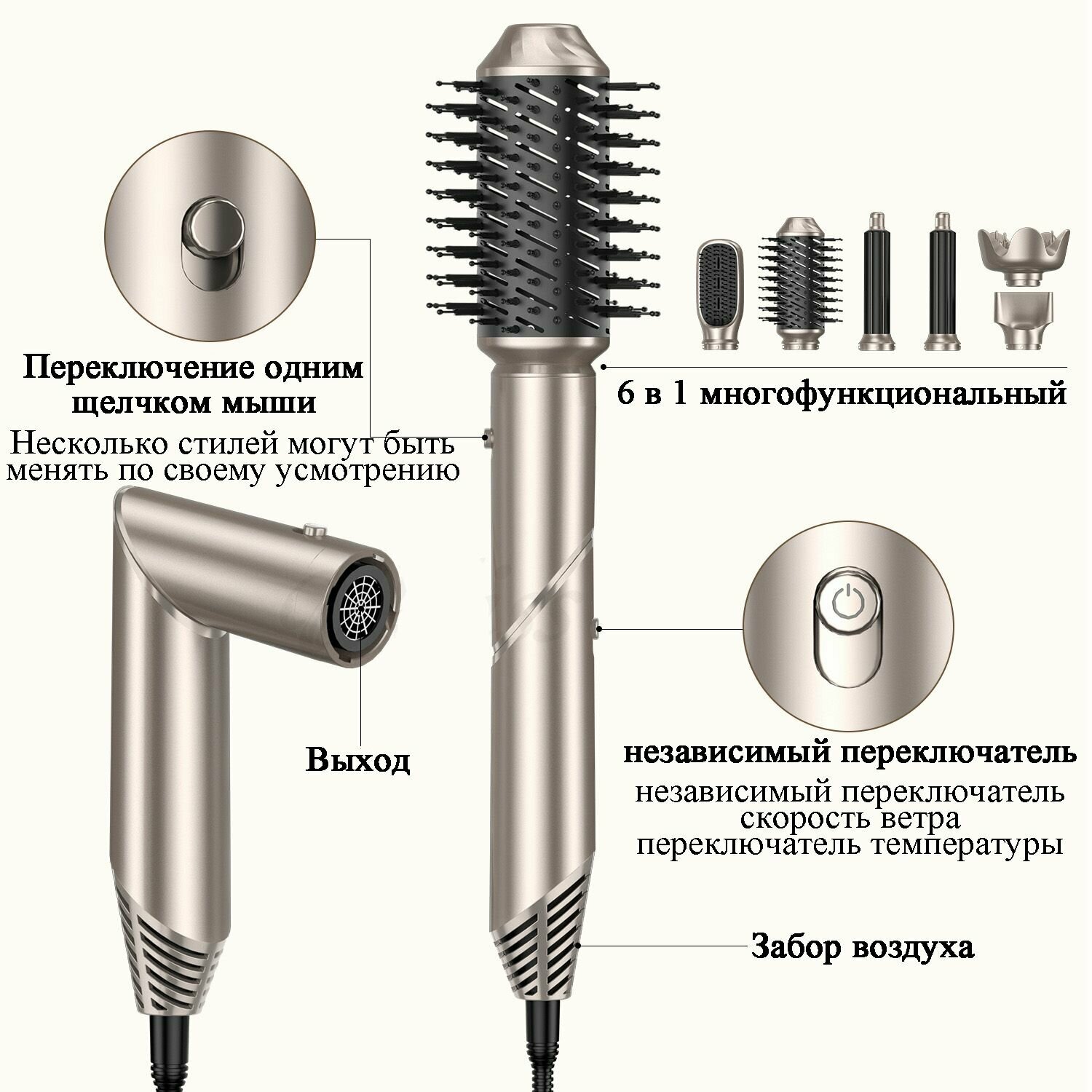 фен для волос beutyone, плойка для локонов/стайлер для волос, с насадками для укладки расческа 6 В 1 интересное: