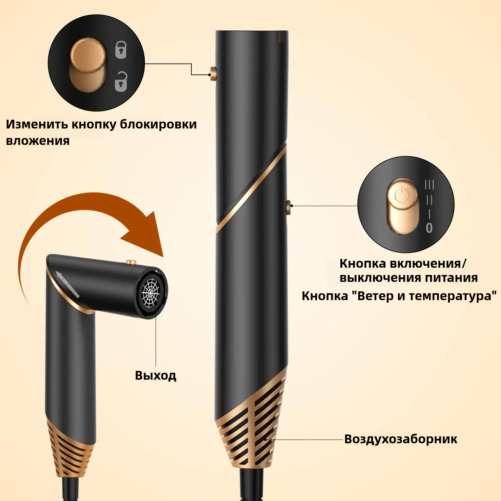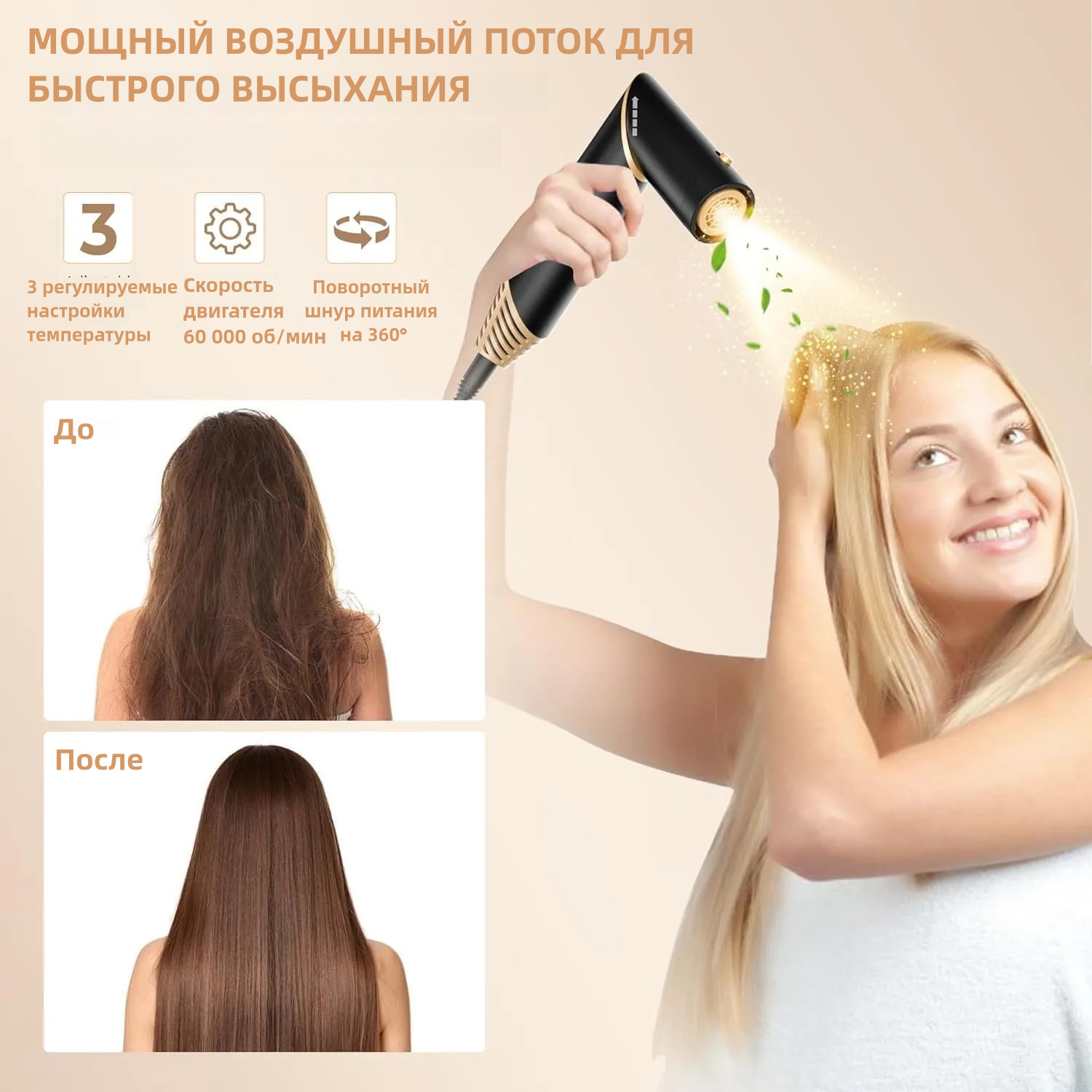 | Дополнительная информация | 6 B 1 фен для волос профессиональный beutyone, 3 скорости ветра, 1400 Вт, черный, профессиональный фен для волос, который можно поворачивать |