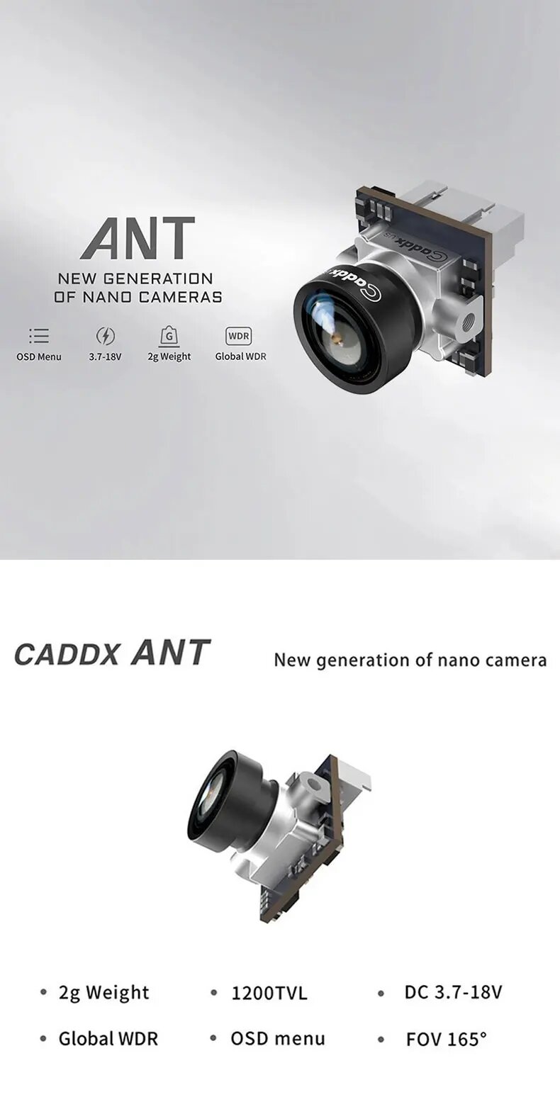 Купить Аналоговая камера CADDXFPV ANT, 1,8 ТВЛ, мм, глобальная зеркальная камера 16:9 4:3 для FPV Tinywhoop Cinewhoop, Серебристый, 16 9