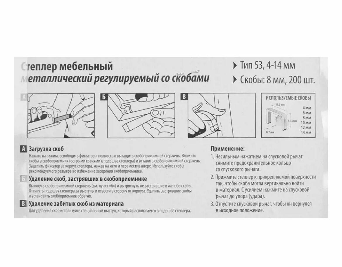 СохранитьSparta Степлер мебельный регулируемый, со скобами 200 шт, тип скобы 53,4-14 мм//42002 . интересное: