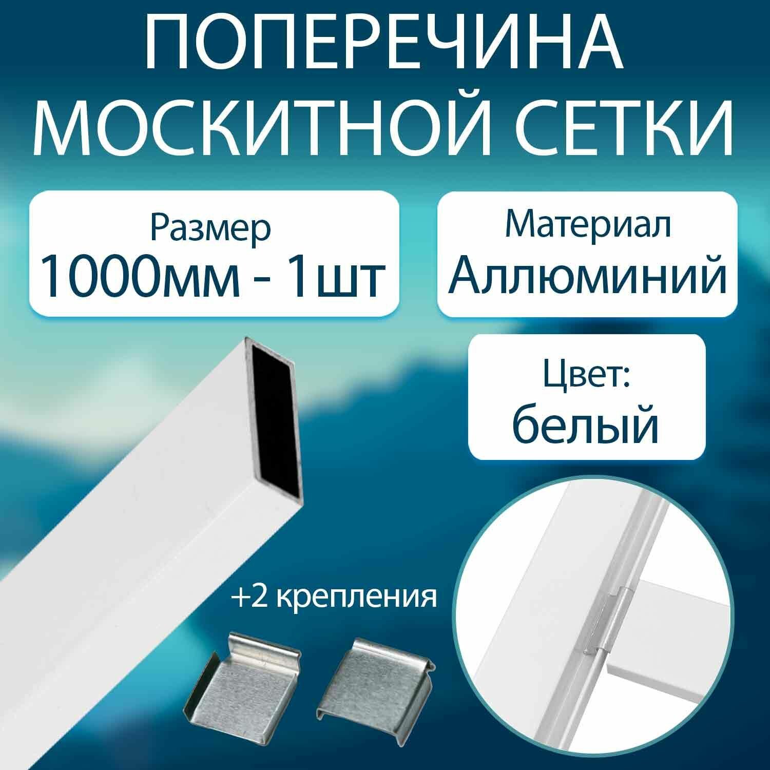 Профиль поперечины для москитной сетки 1м. - 2 шт. Алюминий, белый