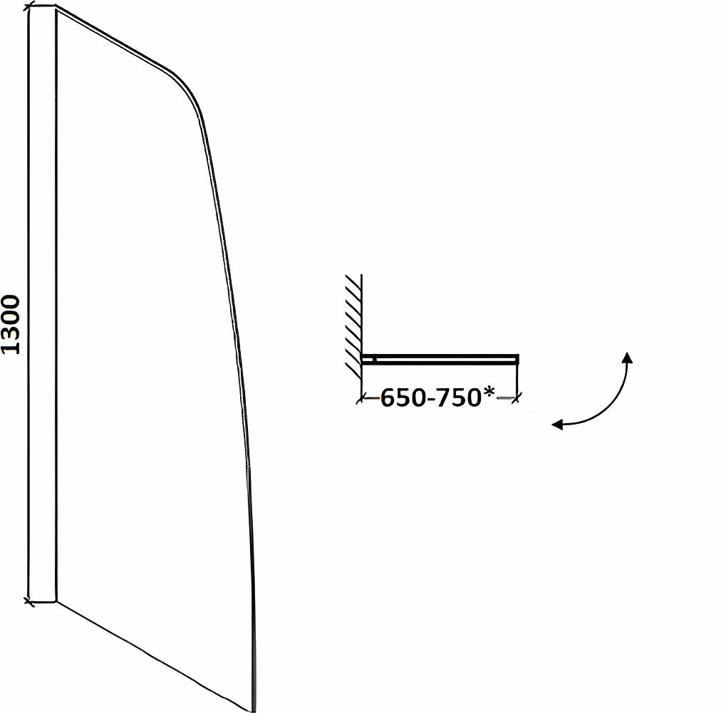 Шторка для ванной PARLY F04B (130x75), профиль черный, стекло прозрачное