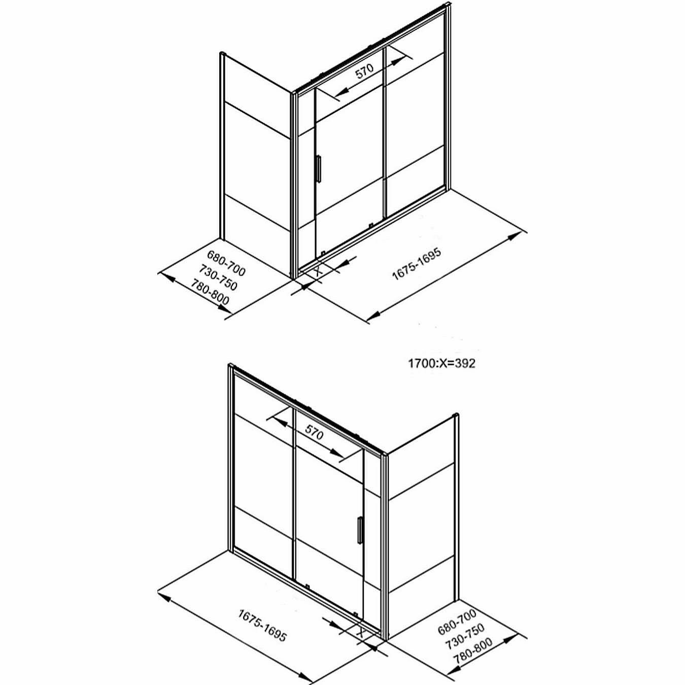 | Дополнительная информация | толщина стекла 6 мм, ругелировка ширины в диапазоне 168-172 см, расположение входа выбирается при монтаже |