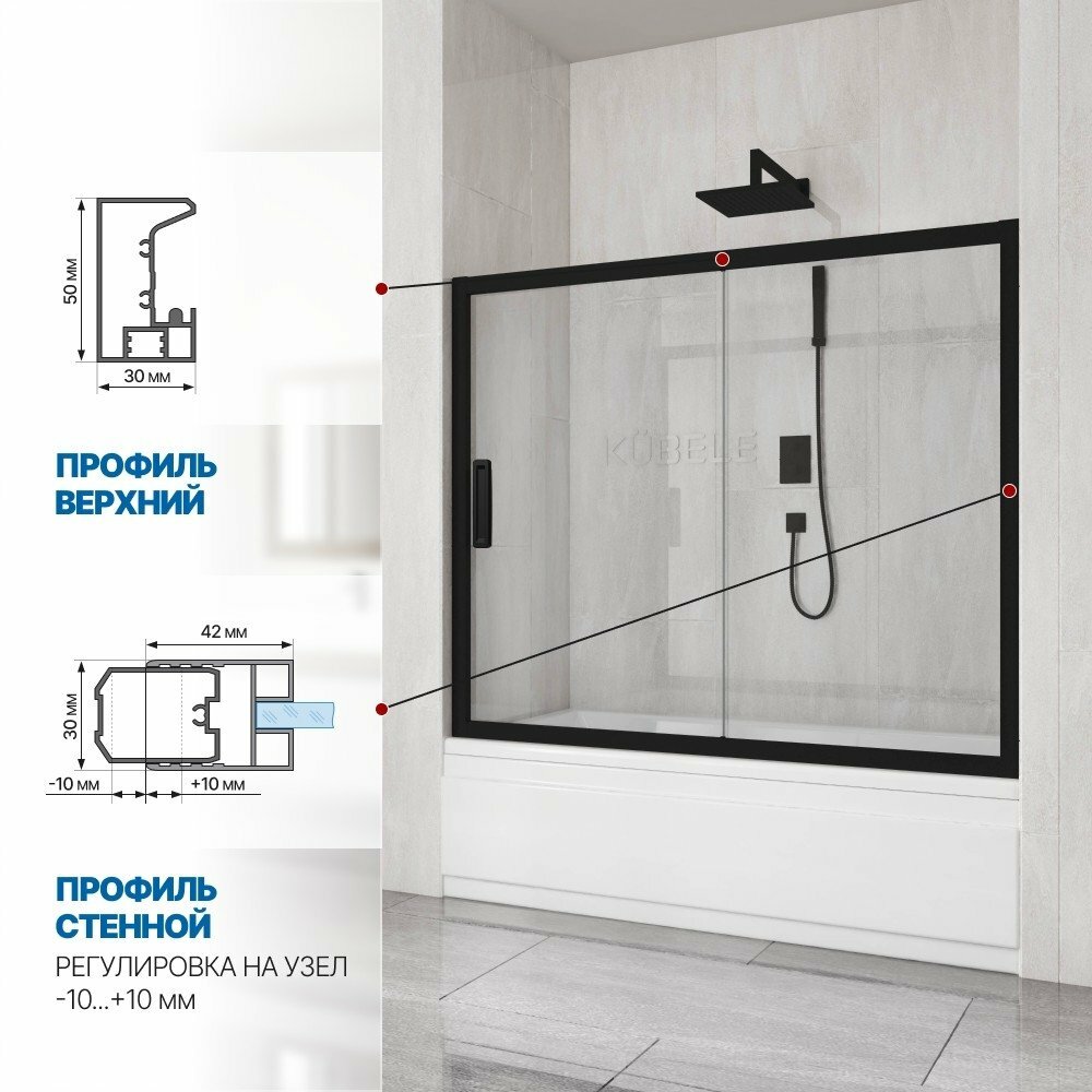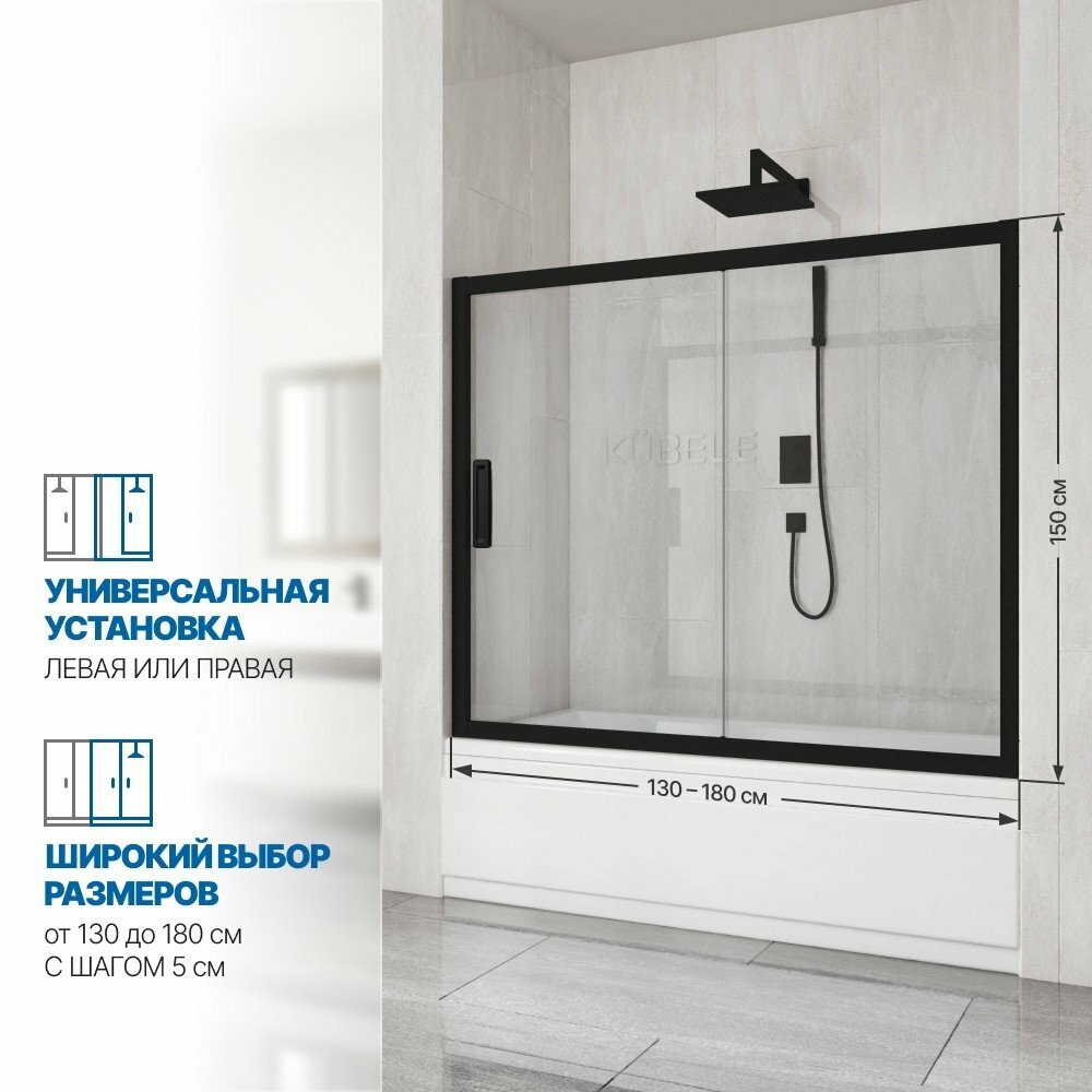 СохранитьШторка на ванну GWMPKB019P2 155x150 см, цвет фурнитуры черный матовый, цвет стекла бесцветный, стекло закаленное 6 мм, открывание двери левое / правое интересное: