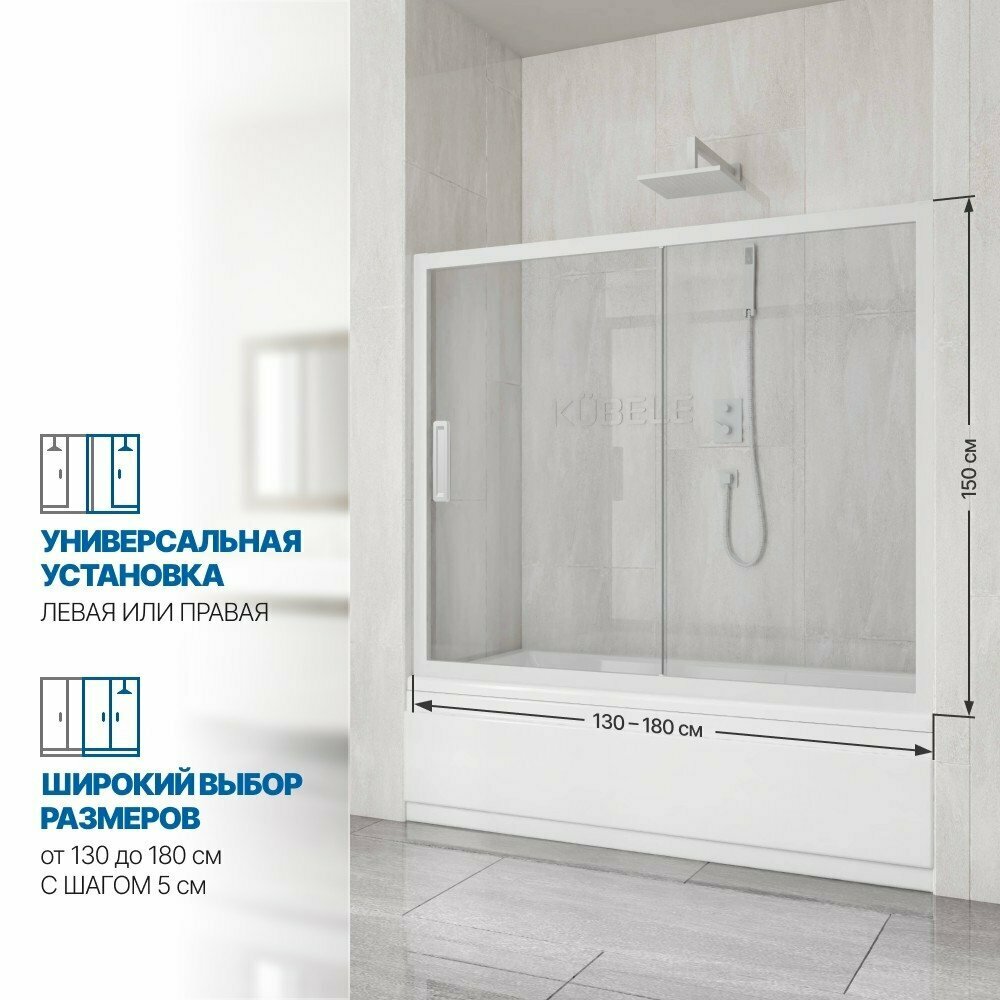 СохранитьШторка на ванну GWMPKB019P2 155x150 см, цвет фурнитуры белый матовый, цвет стекла бесцветный, стекло закаленное 6 мм, открывание двери левое / правое интересное: