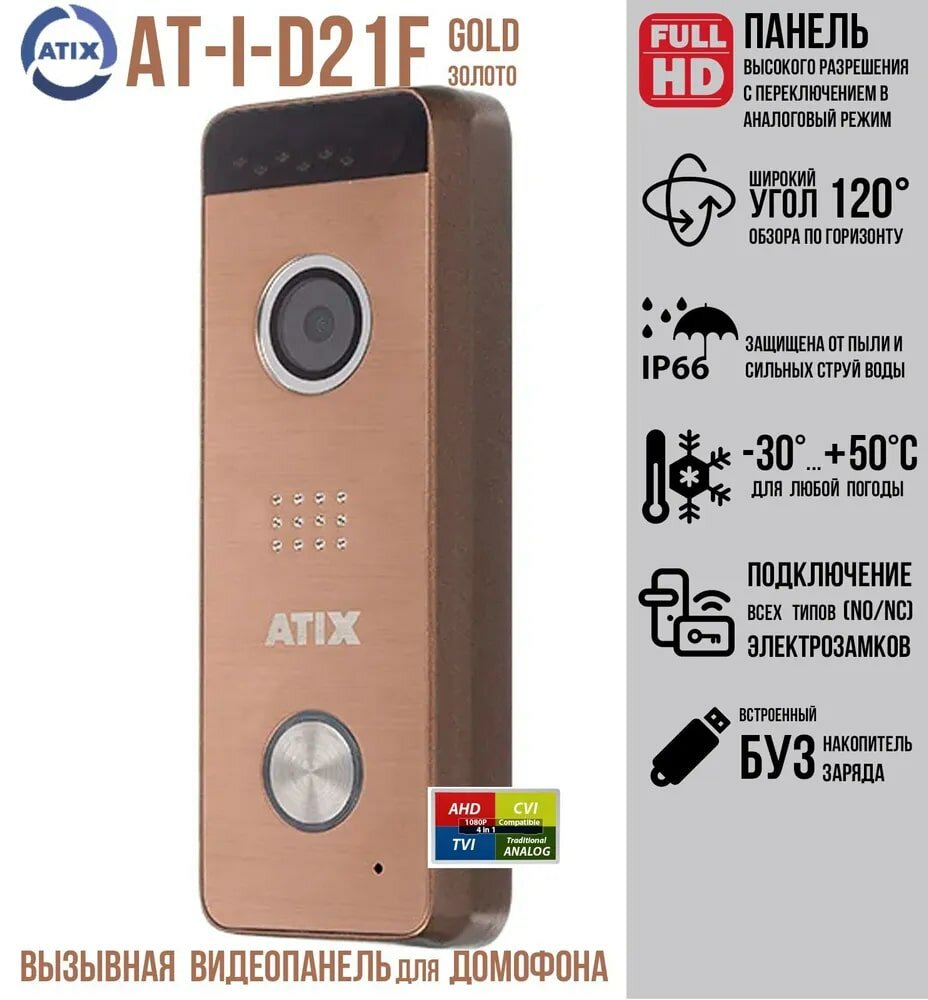 Вызывная FullHD видеопанель для аналогового монитора Atix AT-I-D21F Gold (золотая) 2Мп(AHD)/cvbs с широким углом обзора и встроенным БУЗ интересное: