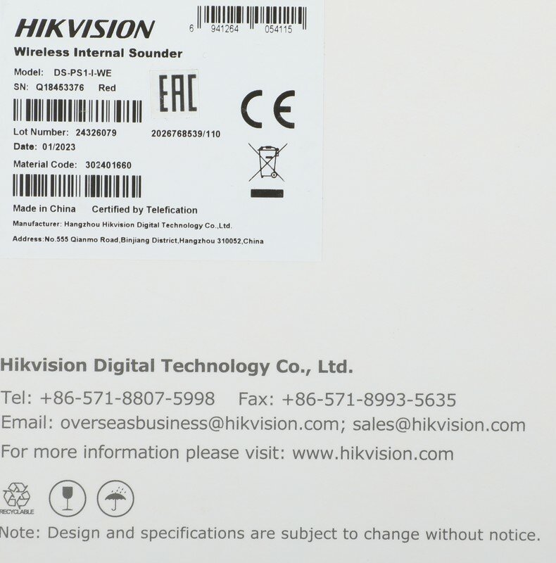 | Дополнительная информация | Комплектация: - Оповещатель (батареи в комплекте CR123A х 3) - Комплект для крепления - Руководство пользователя |