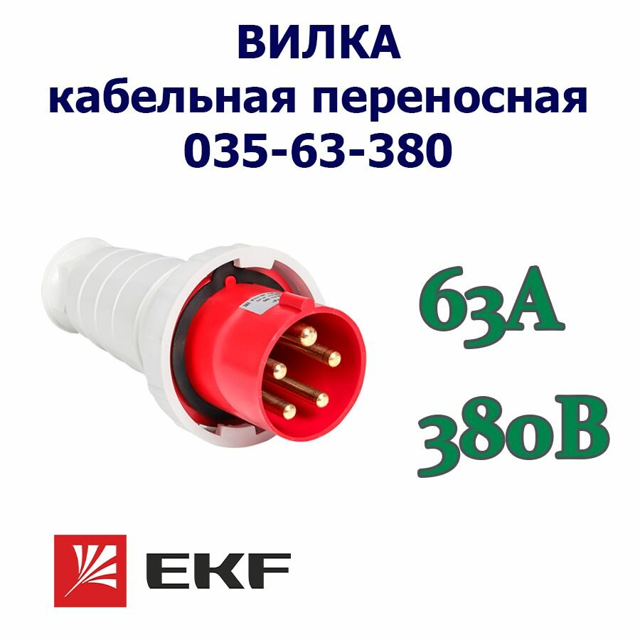 Вилка переносная 035 63А 3P+PE+N 380В IP67 EKF ps-035-63-380 интересное: