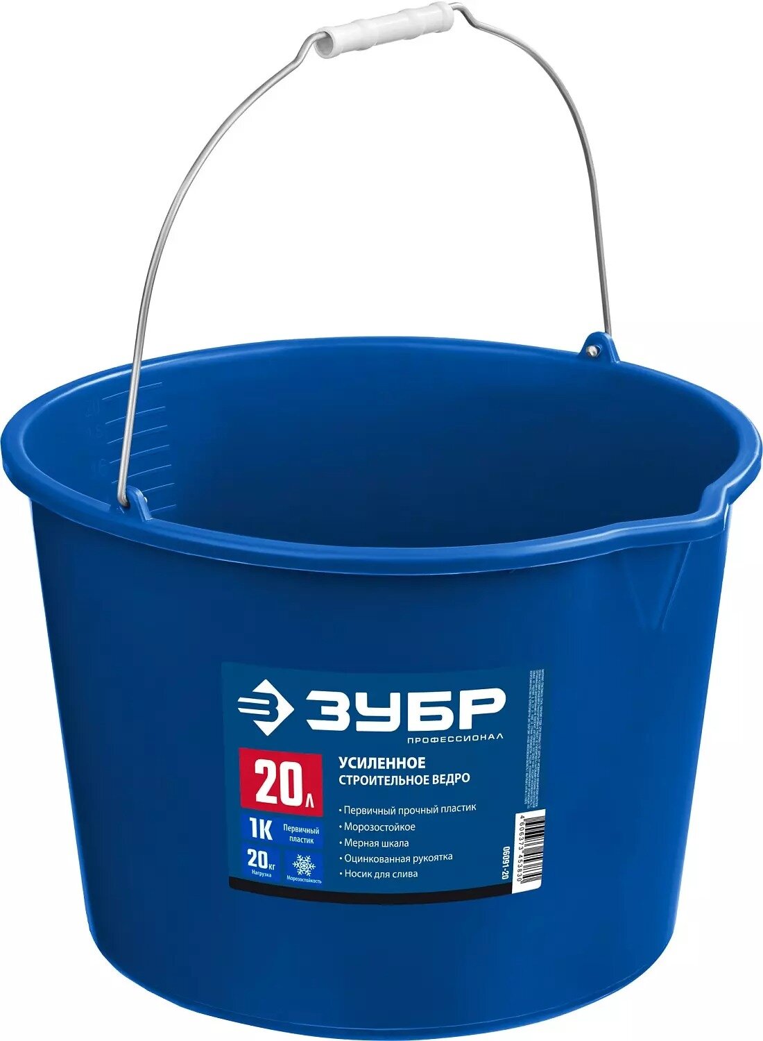 ЗУБР 20 л, первичный высокопрочный пластик, с носиком, Усиленное строительное ведро, профессионал (06091-20)