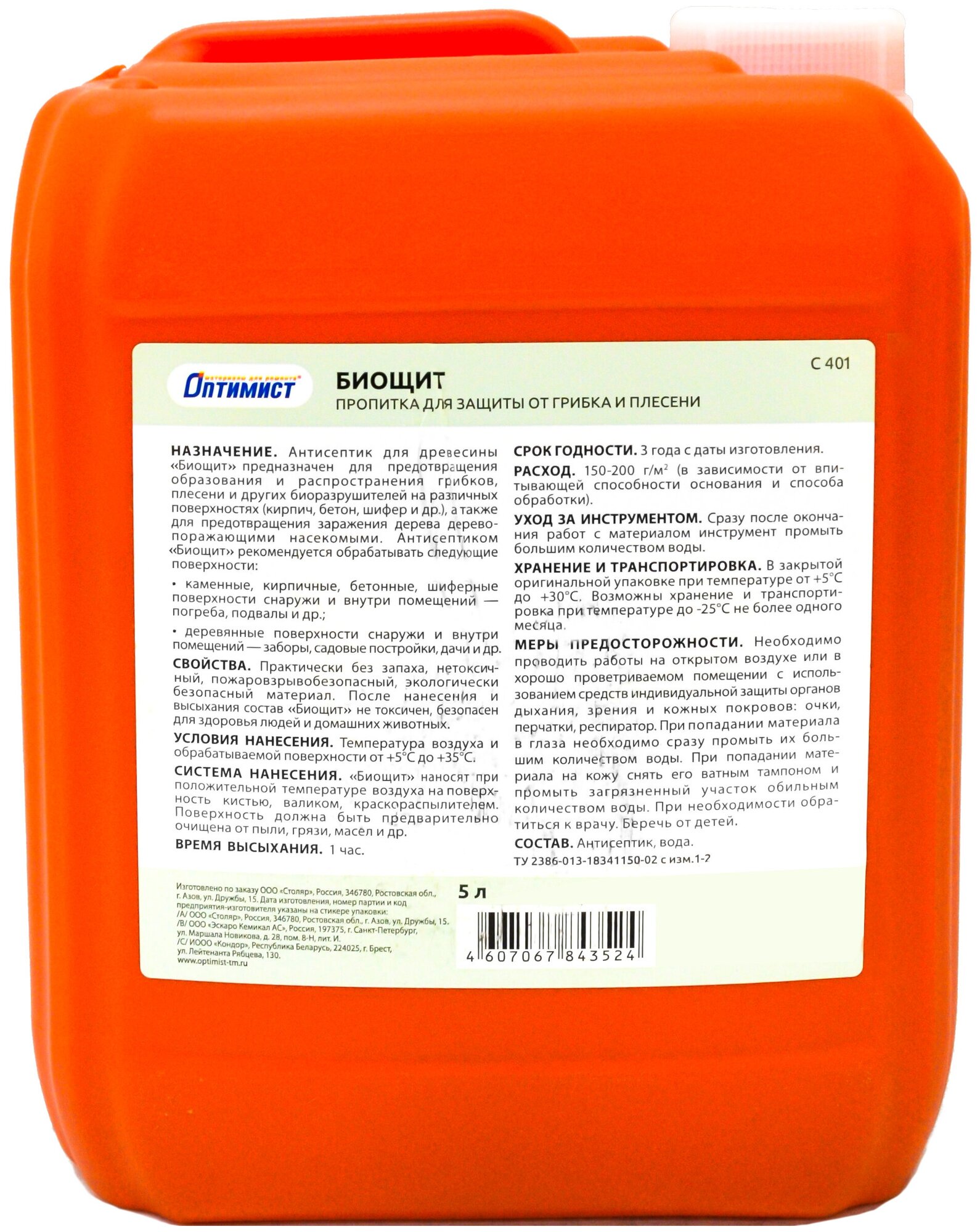 Купить Пропитка Оптимист C401 Биощит для защиты от грибка и плесени 5 л