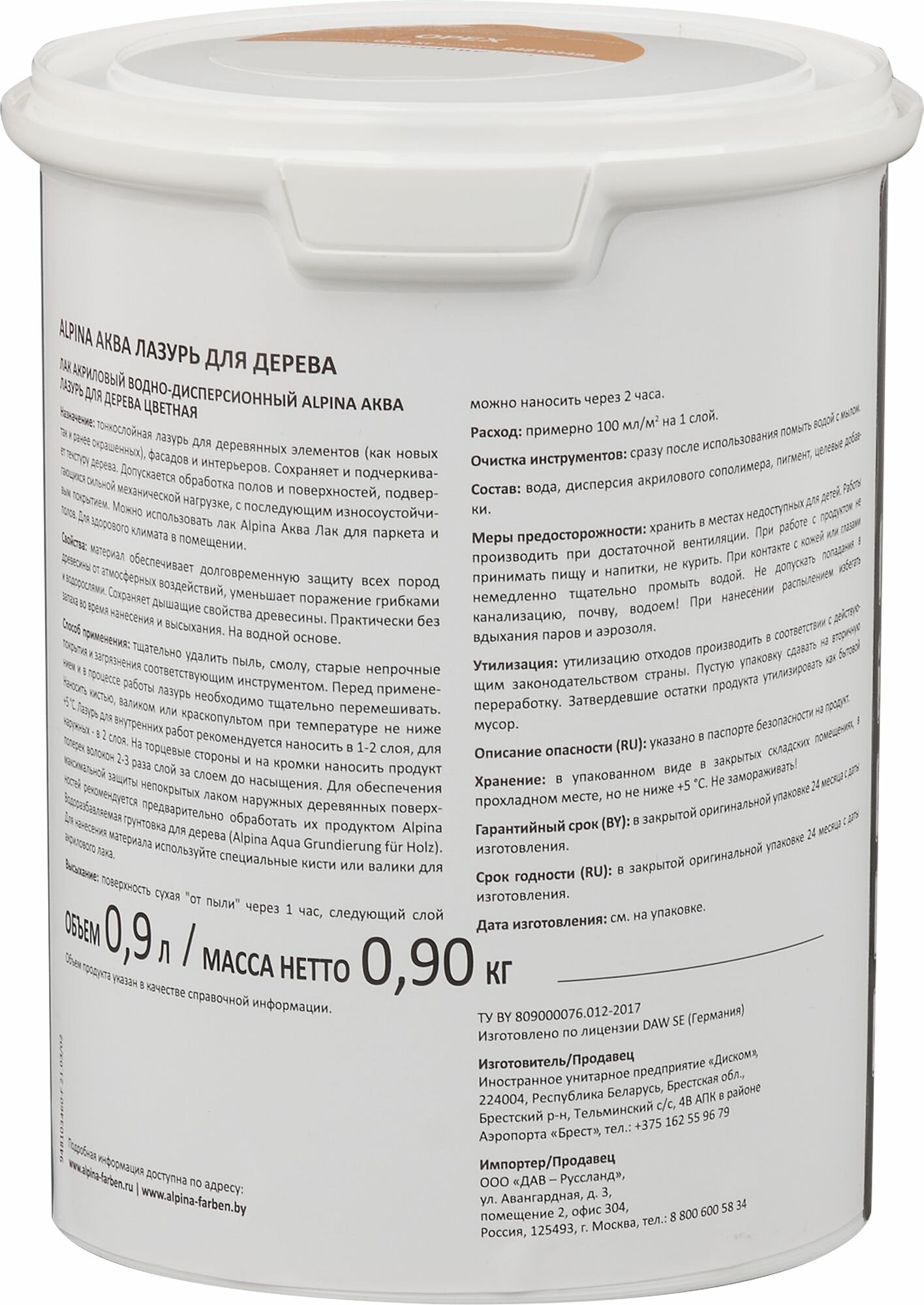 Купить Аква-лак Аlpina орех шелковисто-матовый0,9 л(1/6)