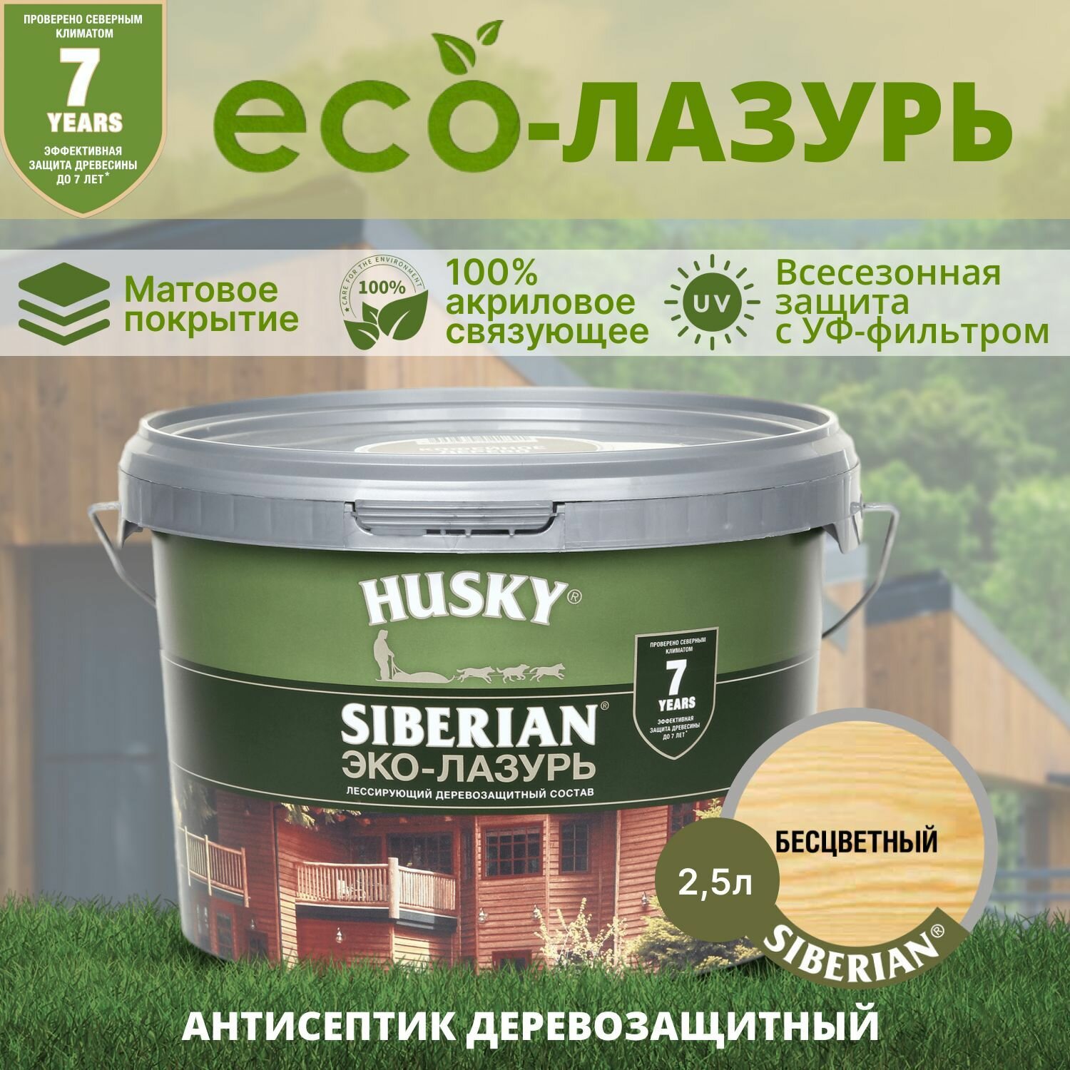 Антисептик husky siberian Эко-Лазурь полуматовый бесцветный 2,5л